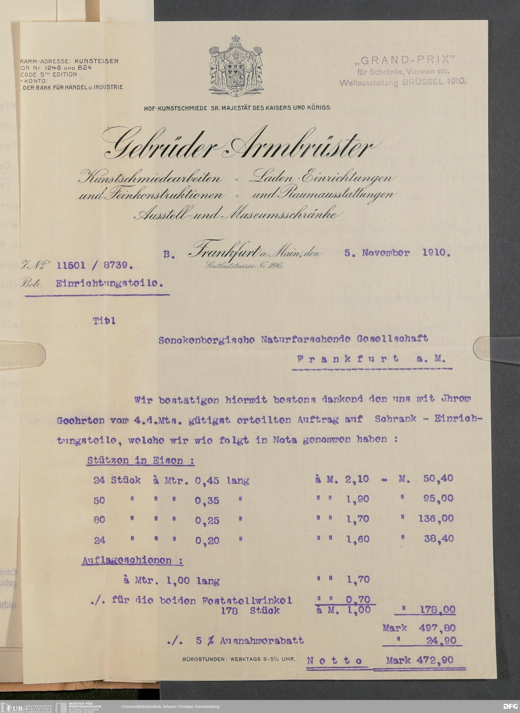 V176 Senckenberg Gesellschaft für Naturforschung, 520 - Ankauf von Museumsschränken bei der Firma Gebrüder Armbrüster
