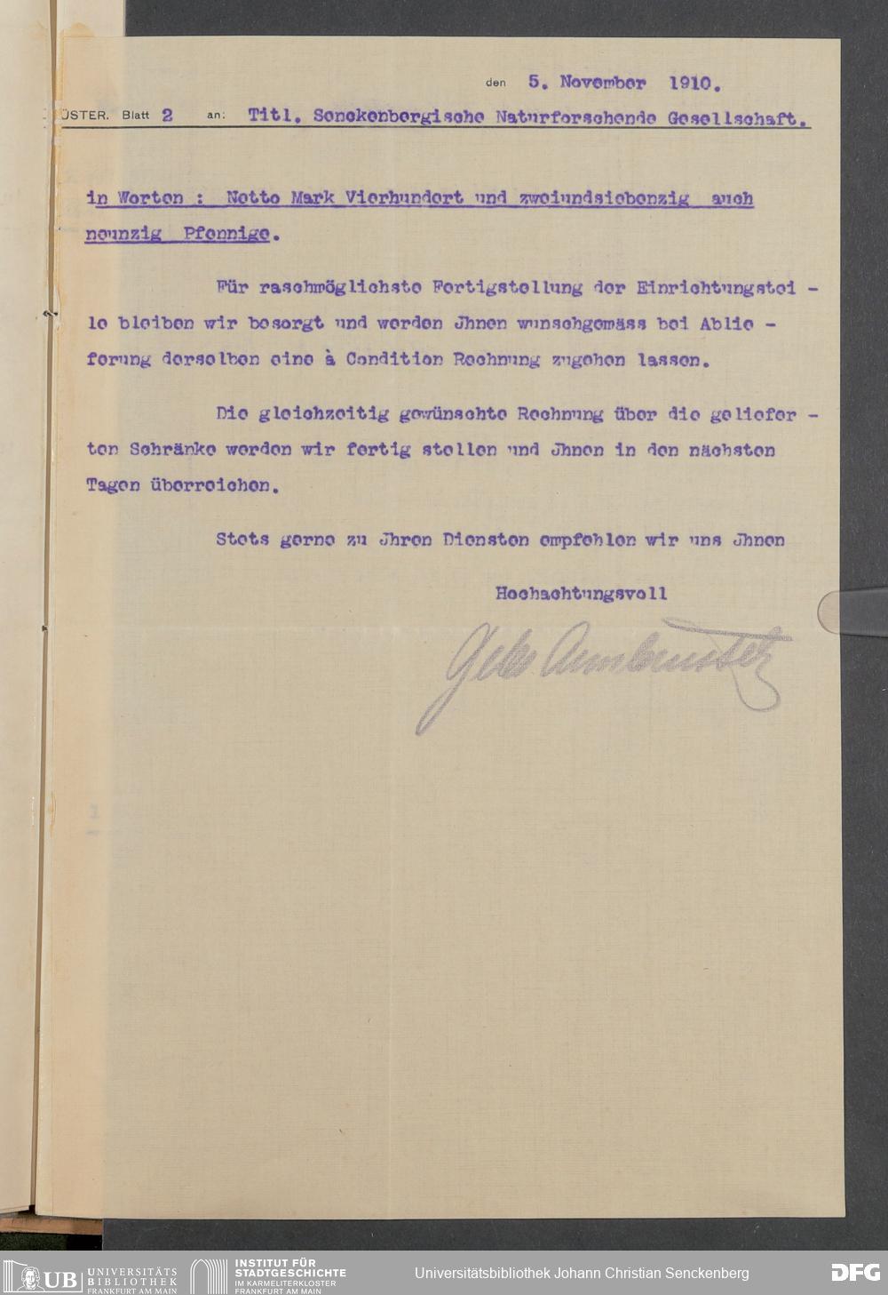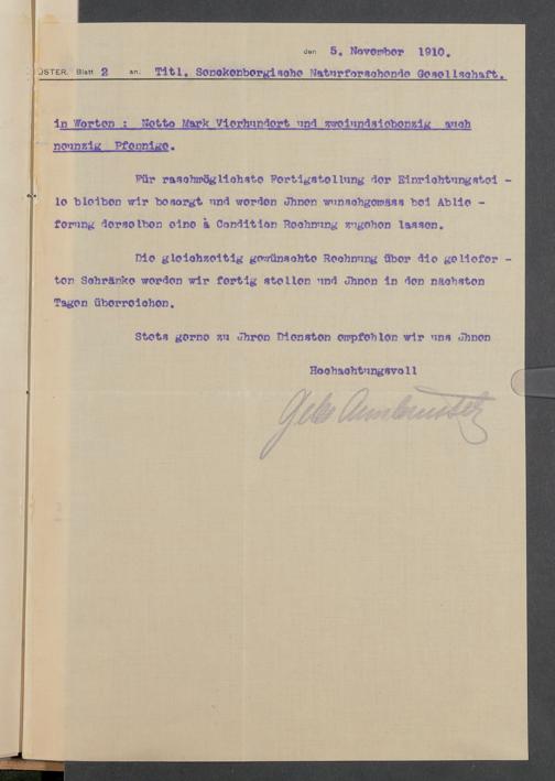 V176 Senckenberg Gesellschaft für Naturforschung, 520 - Ankauf von Museumsschränken bei der Firma Gebrüder Armbrüster