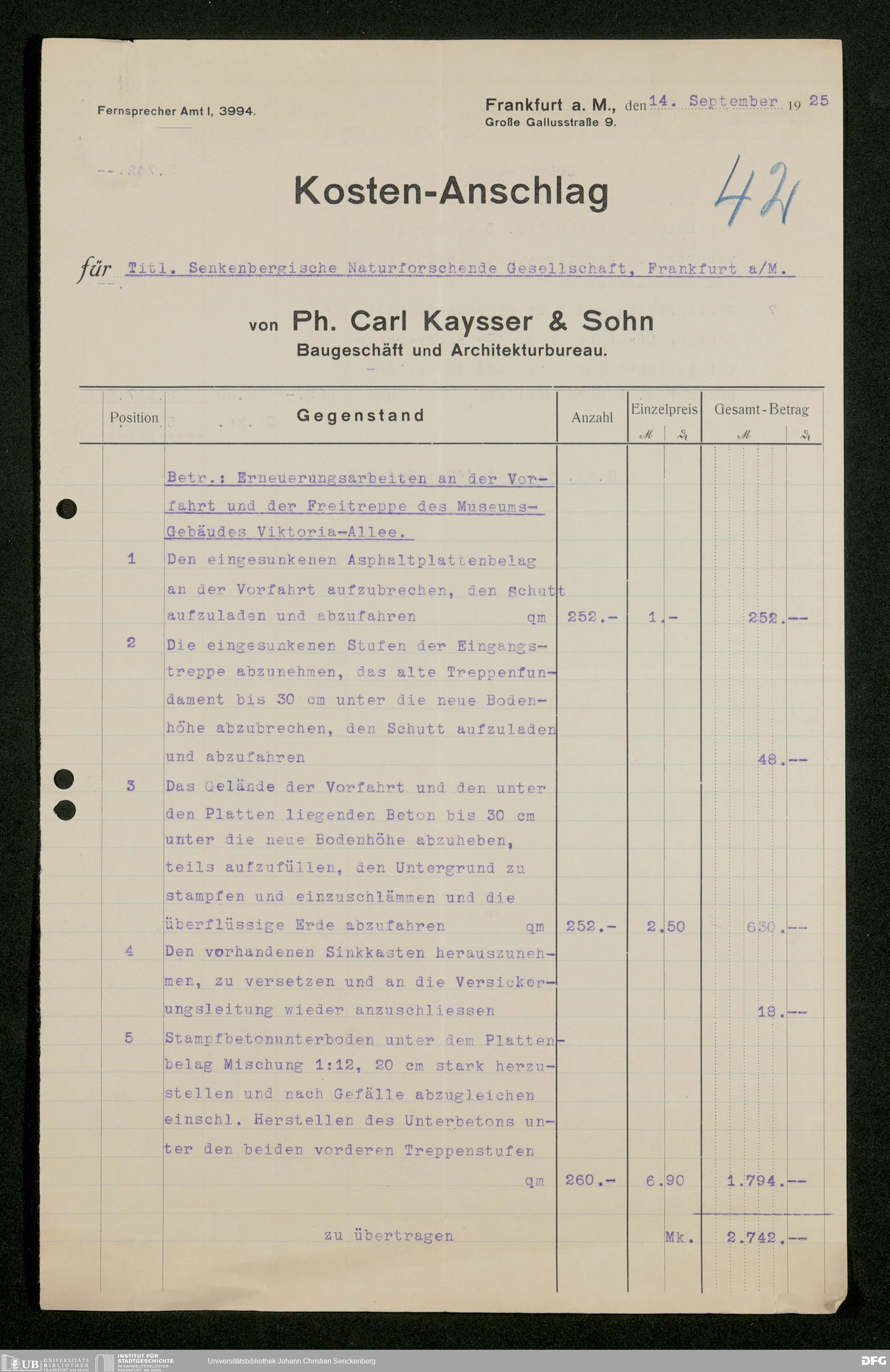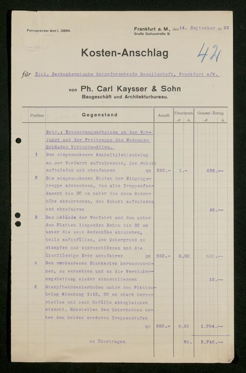 V176 Senckenberg Gesellschaft für Naturforschung, 524 - Umbaumaßnahmen und Reparaturen in Museum und Forschungsräumen
