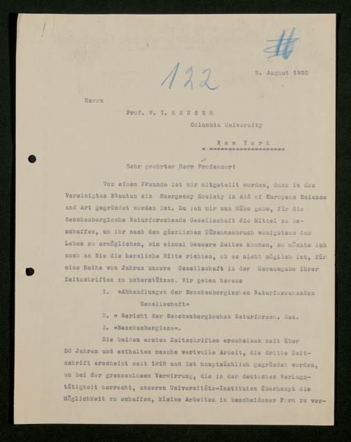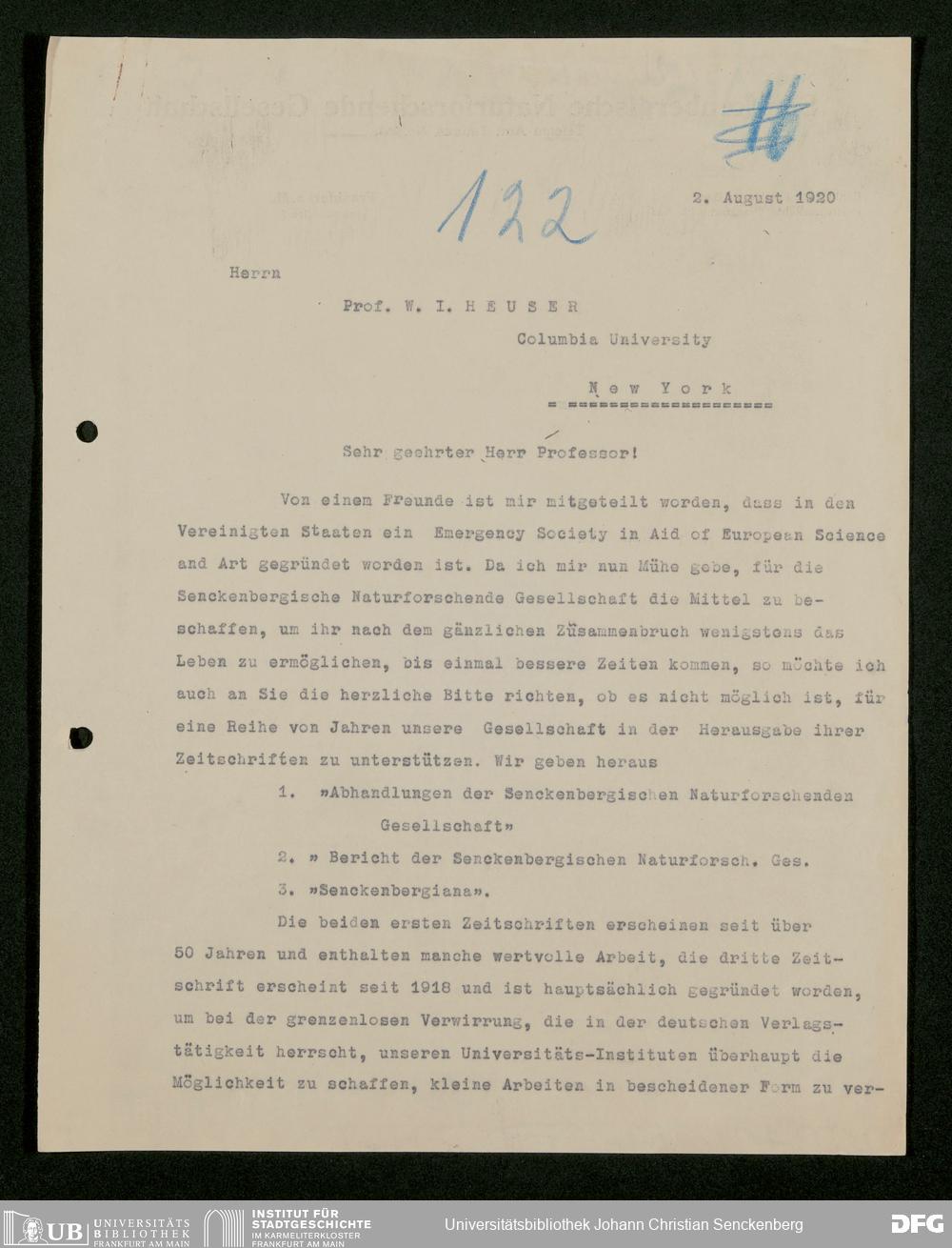 V176 Senckenberg Gesellschaft für Naturforschung, 528 - Mitgliederwerbung in und Bitten um finanzielle Unterstützung aus den USA