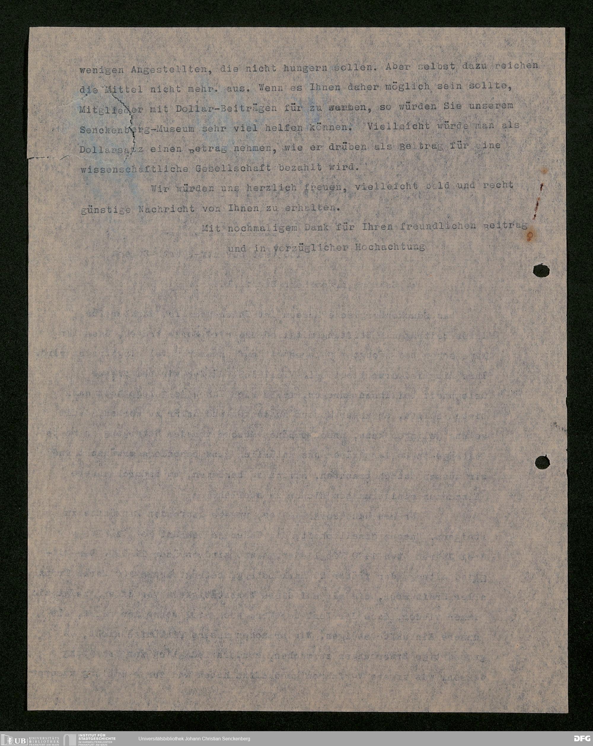 V176 Senckenberg Gesellschaft für Naturforschung, 528 - Mitgliederwerbung in und Bitten um finanzielle Unterstützung aus den USA