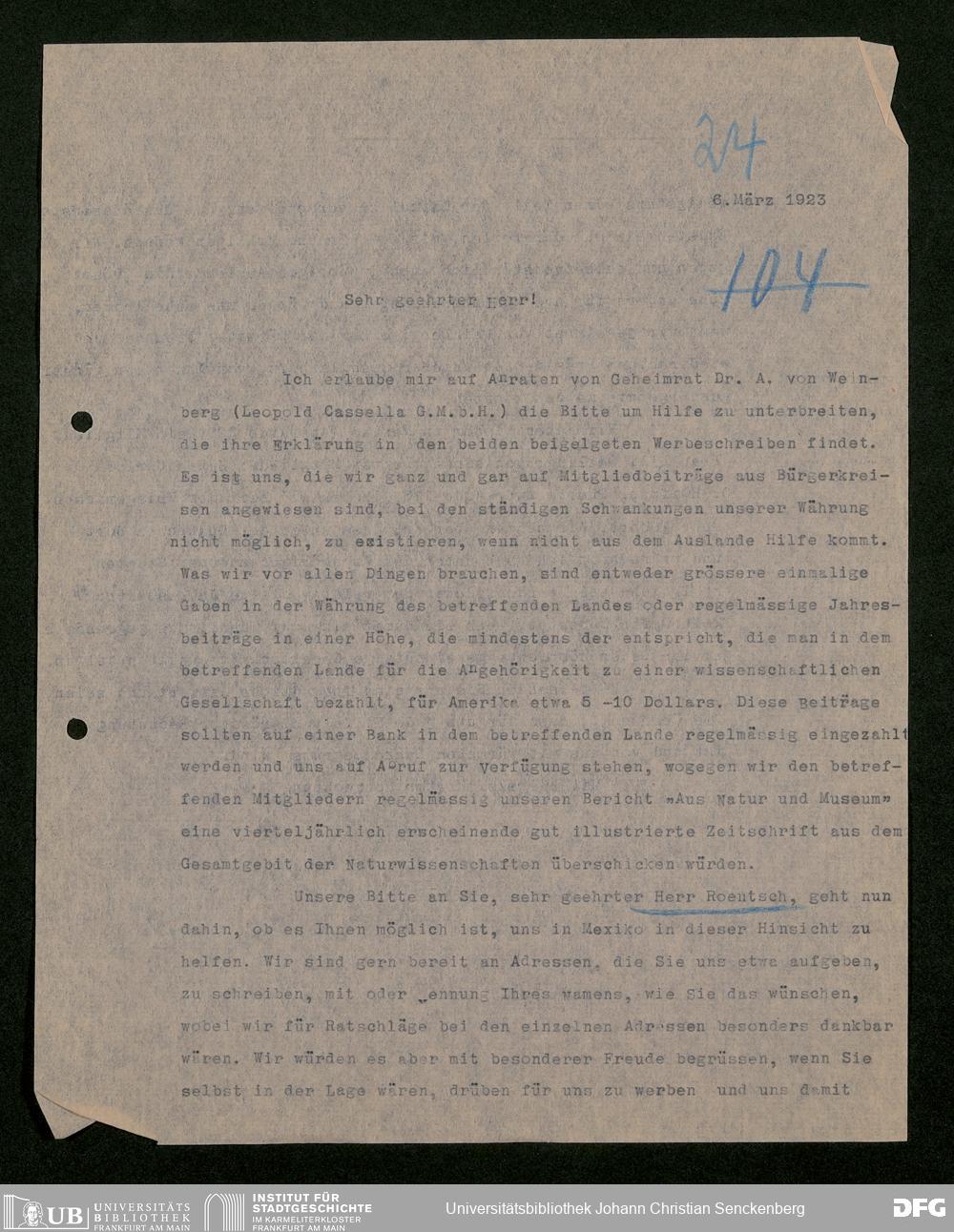 V176 Senckenberg Gesellschaft für Naturforschung, 528 - Mitgliederwerbung in und Bitten um finanzielle Unterstützung aus den USA