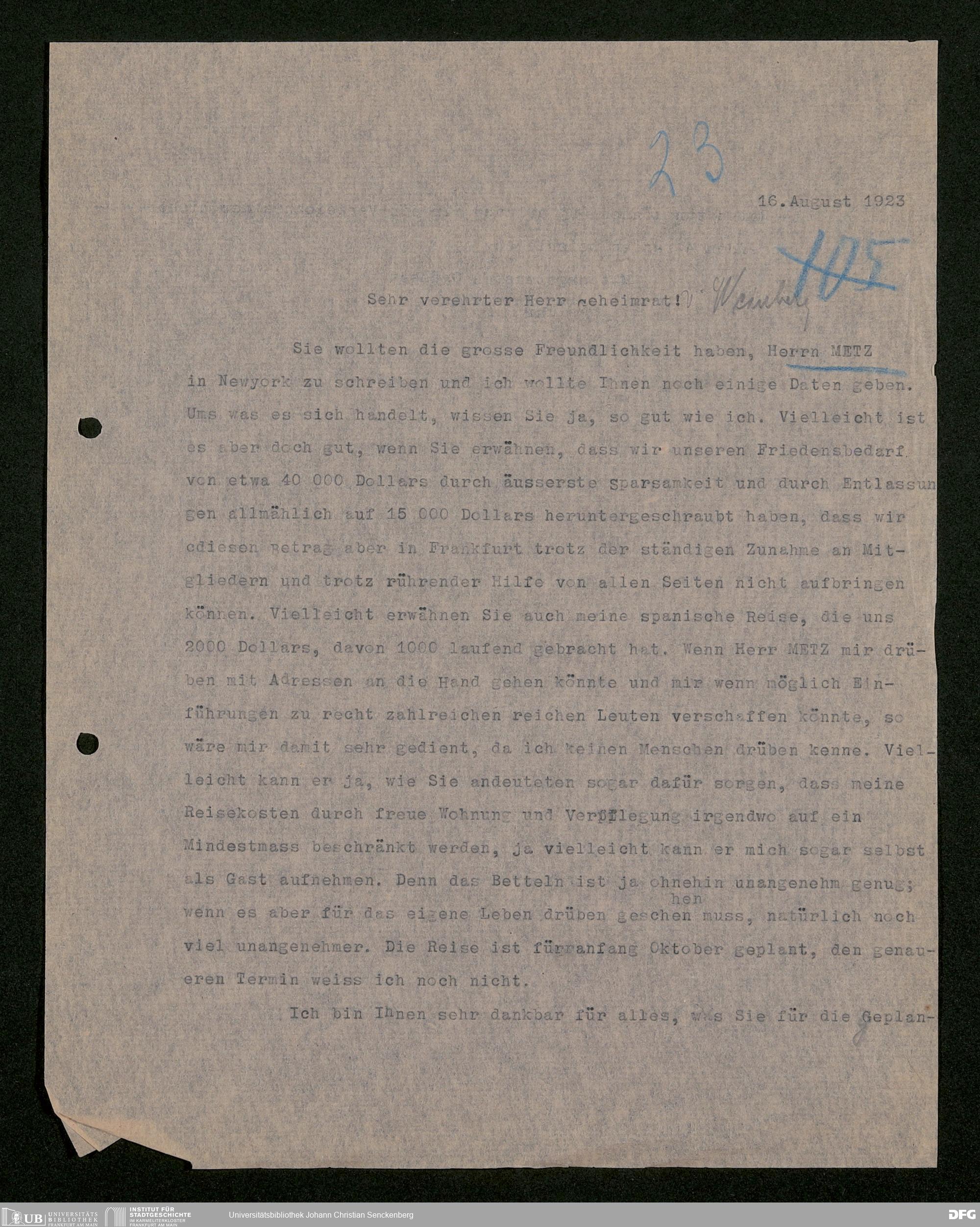 V176 Senckenberg Gesellschaft für Naturforschung, 528 - Mitgliederwerbung in und Bitten um finanzielle Unterstützung aus den USA