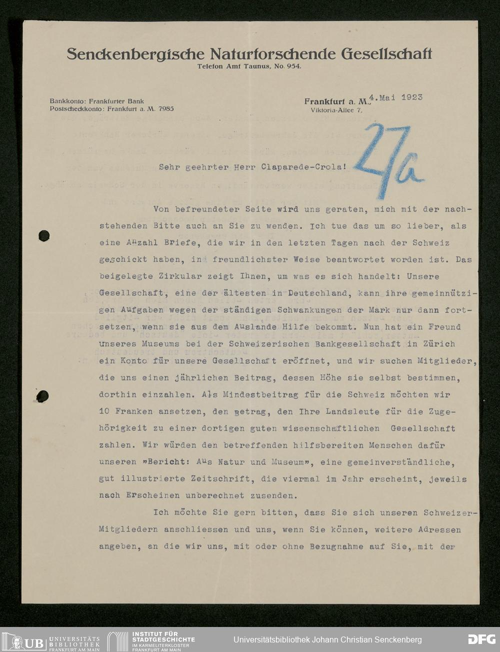 V176 Senckenberg Gesellschaft für Naturforschung, 532 - Mitgliederwerbung in der Schweiz