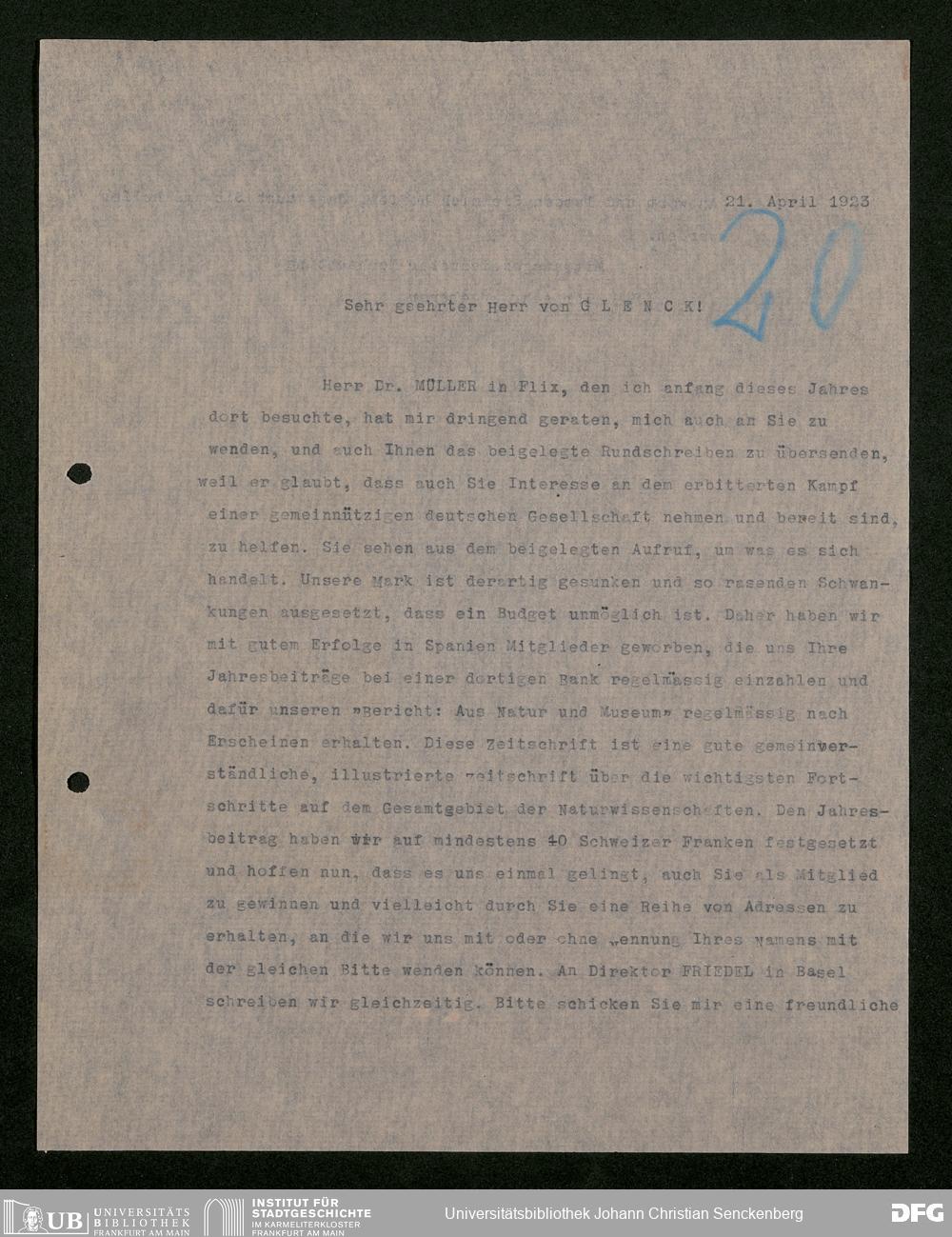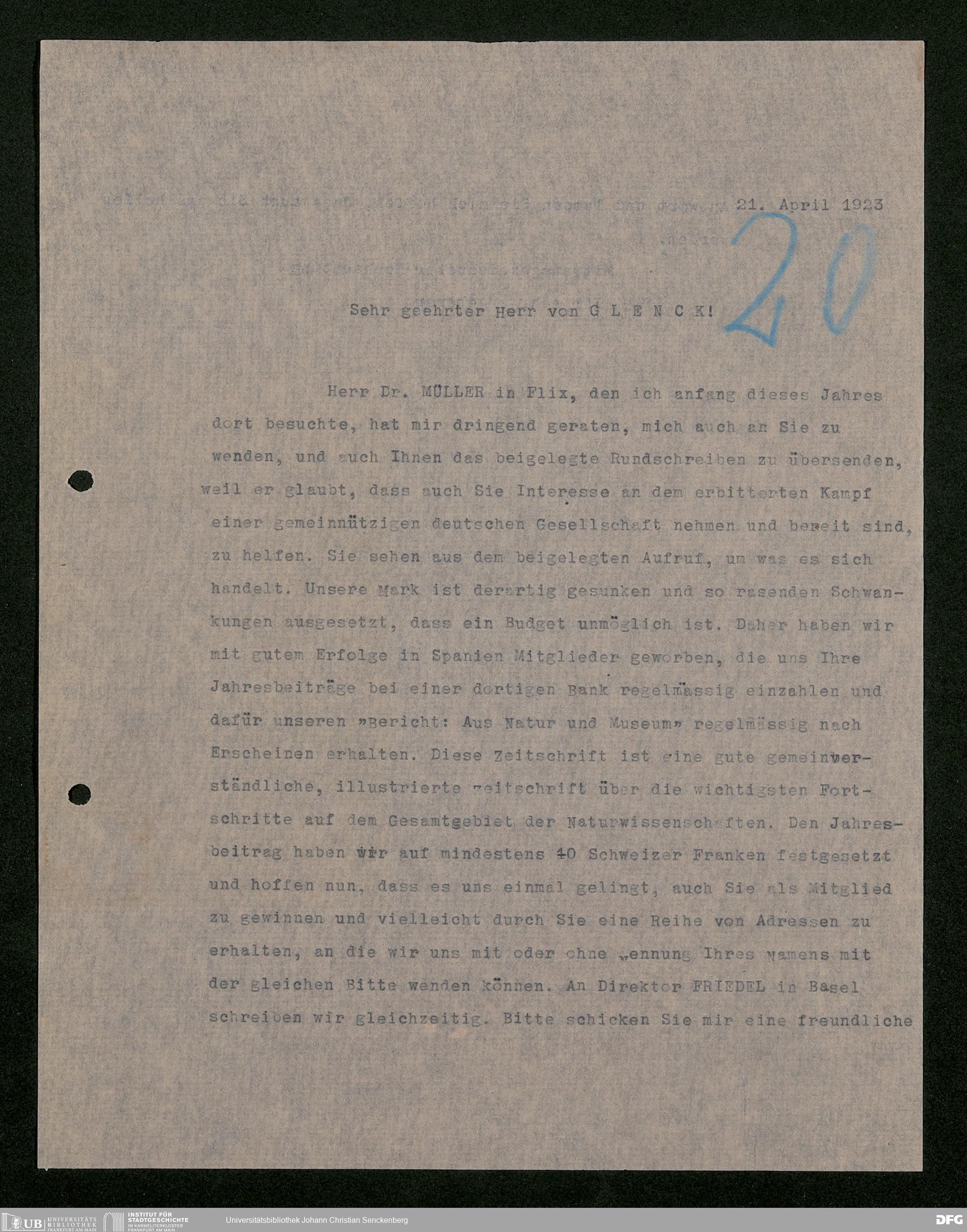 V176 Senckenberg Gesellschaft für Naturforschung, 532 - Mitgliederwerbung in der Schweiz