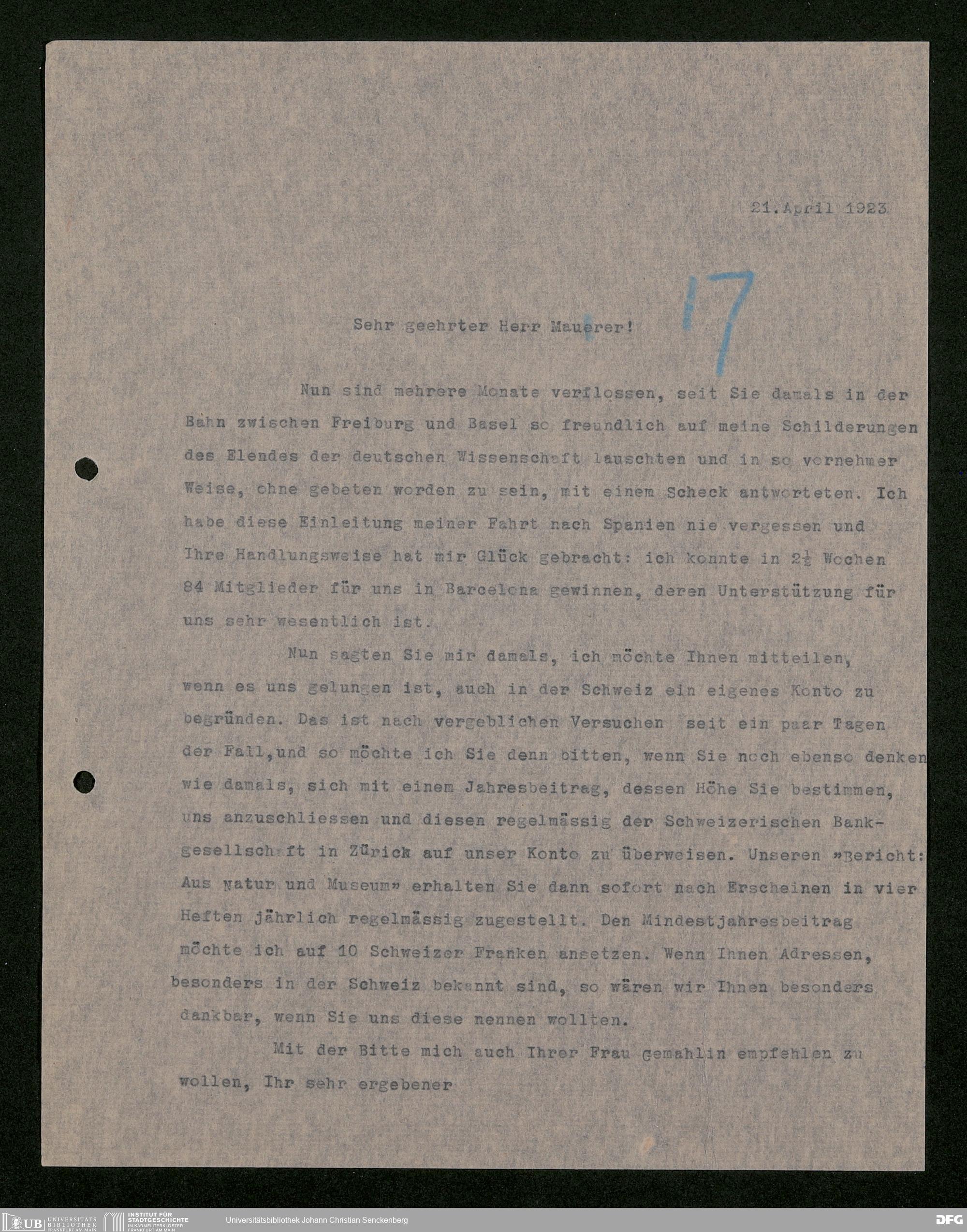 V176 Senckenberg Gesellschaft für Naturforschung, 532 - Mitgliederwerbung in der Schweiz