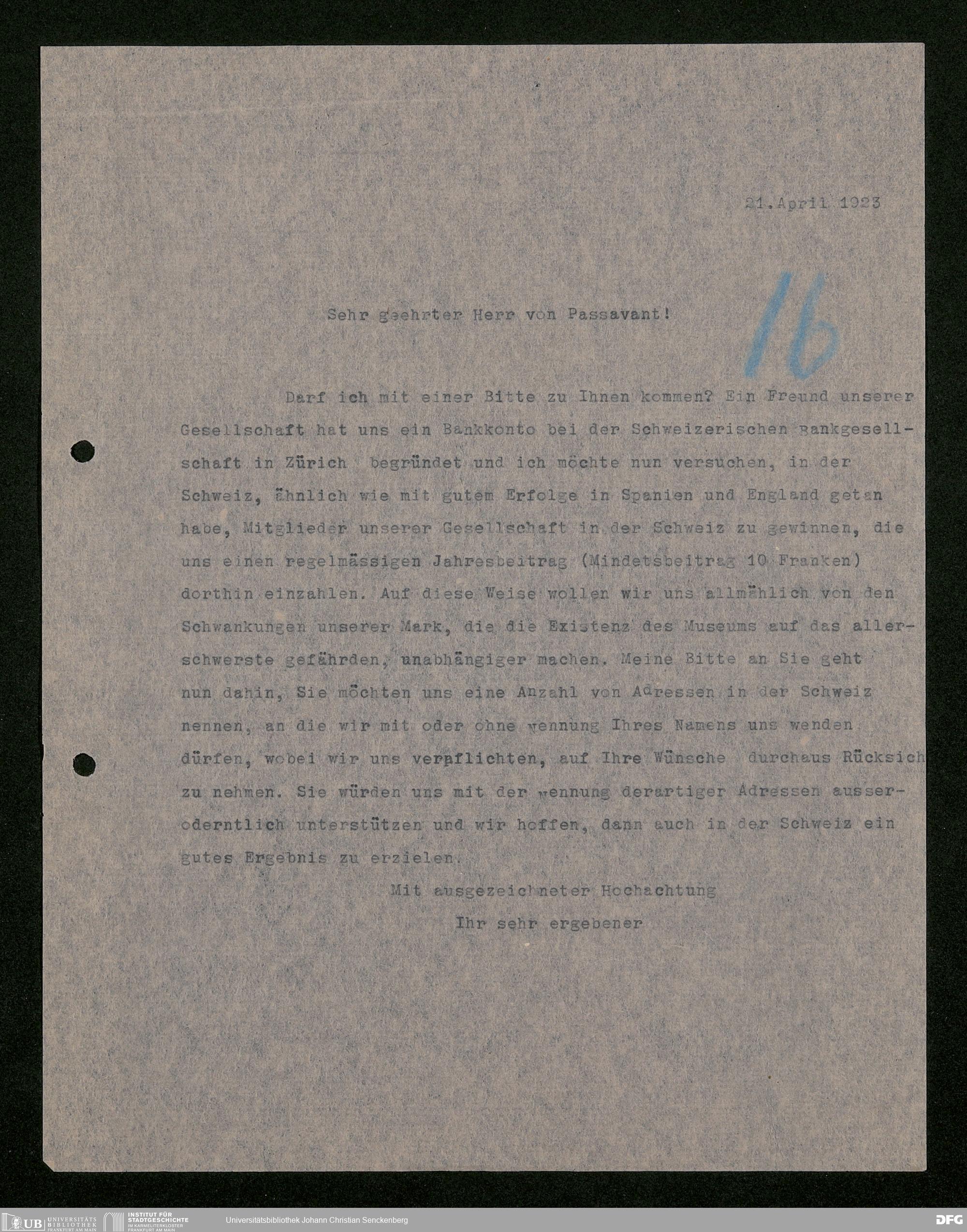 V176 Senckenberg Gesellschaft für Naturforschung, 532 - Mitgliederwerbung in der Schweiz