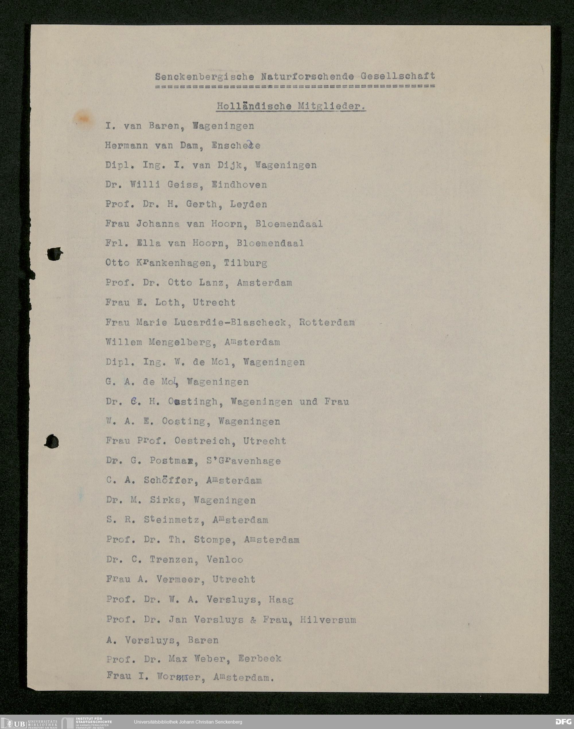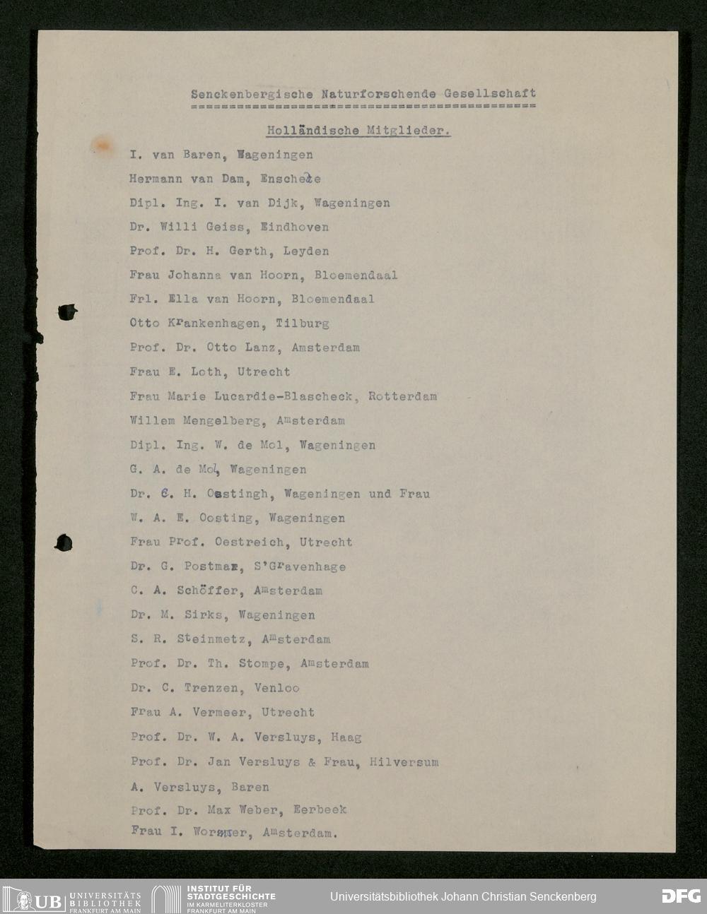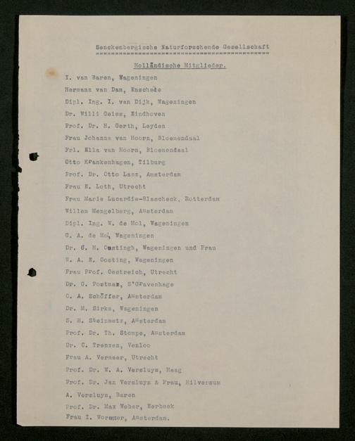 V176 Senckenberg Gesellschaft für Naturforschung, 534 - Mitgliederwerbung in und Geldspenden aus den Niederlanden