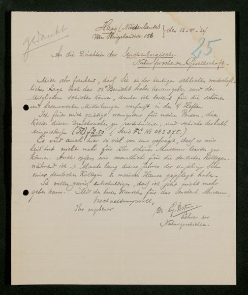V176 Senckenberg Gesellschaft für Naturforschung, 534 - Mitgliederwerbung in und Geldspenden aus den Niederlanden