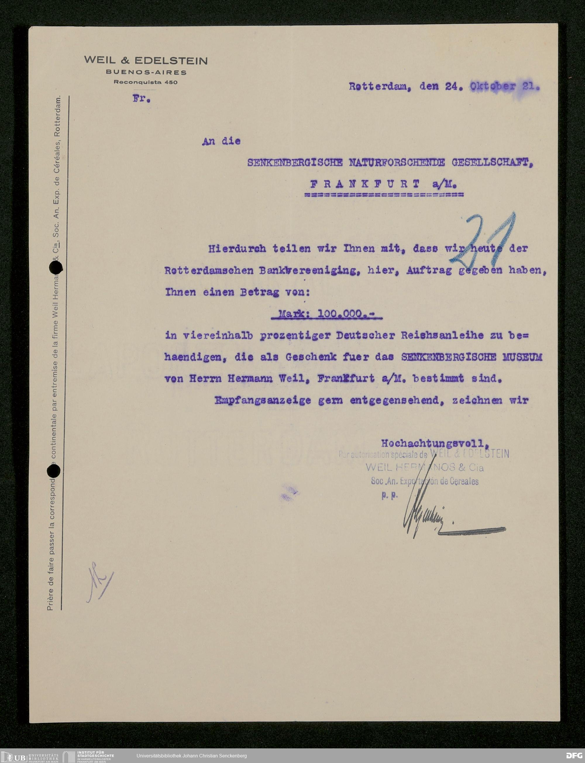 V176 Senckenberg Gesellschaft für Naturforschung, 534 - Mitgliederwerbung in und Geldspenden aus den Niederlanden