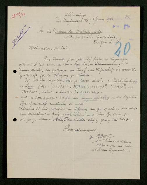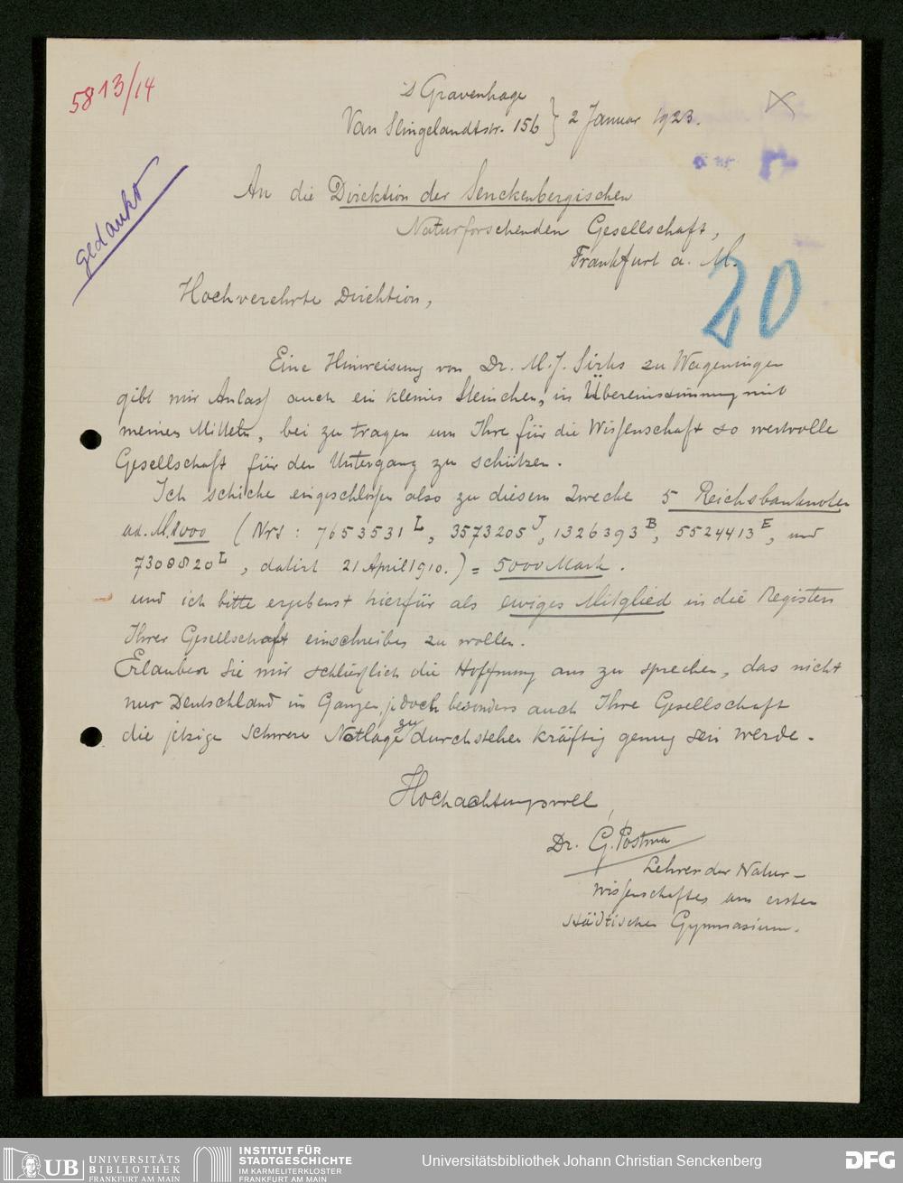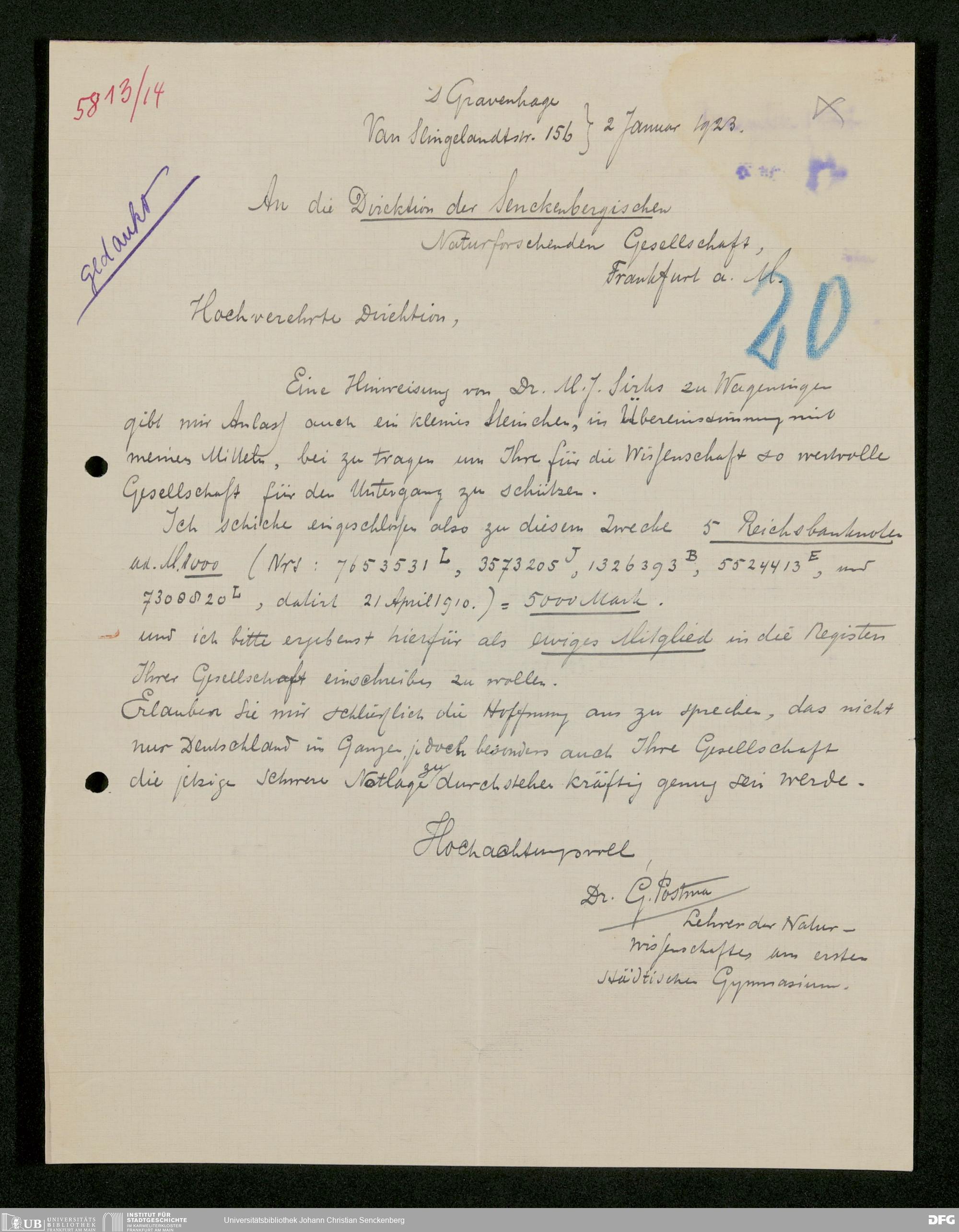 V176 Senckenberg Gesellschaft für Naturforschung, 534 - Mitgliederwerbung in und Geldspenden aus den Niederlanden