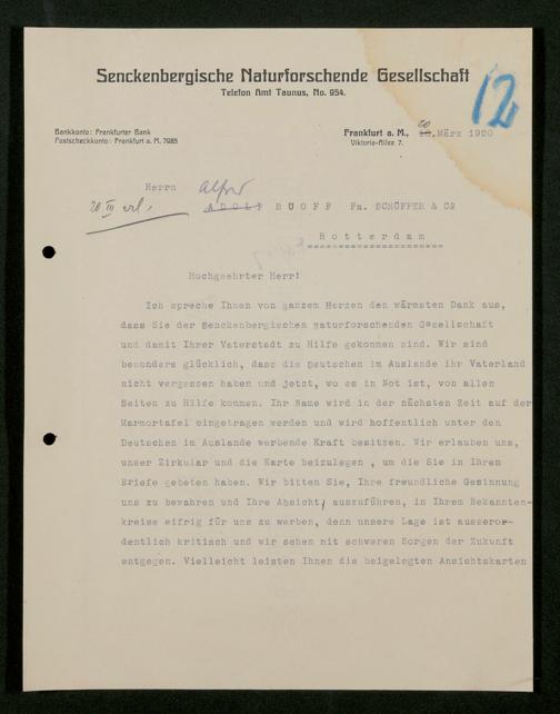 V176 Senckenberg Gesellschaft für Naturforschung, 534 - Mitgliederwerbung in und Geldspenden aus den Niederlanden
