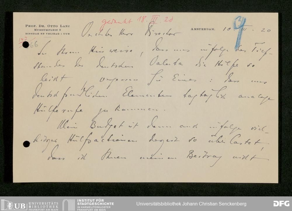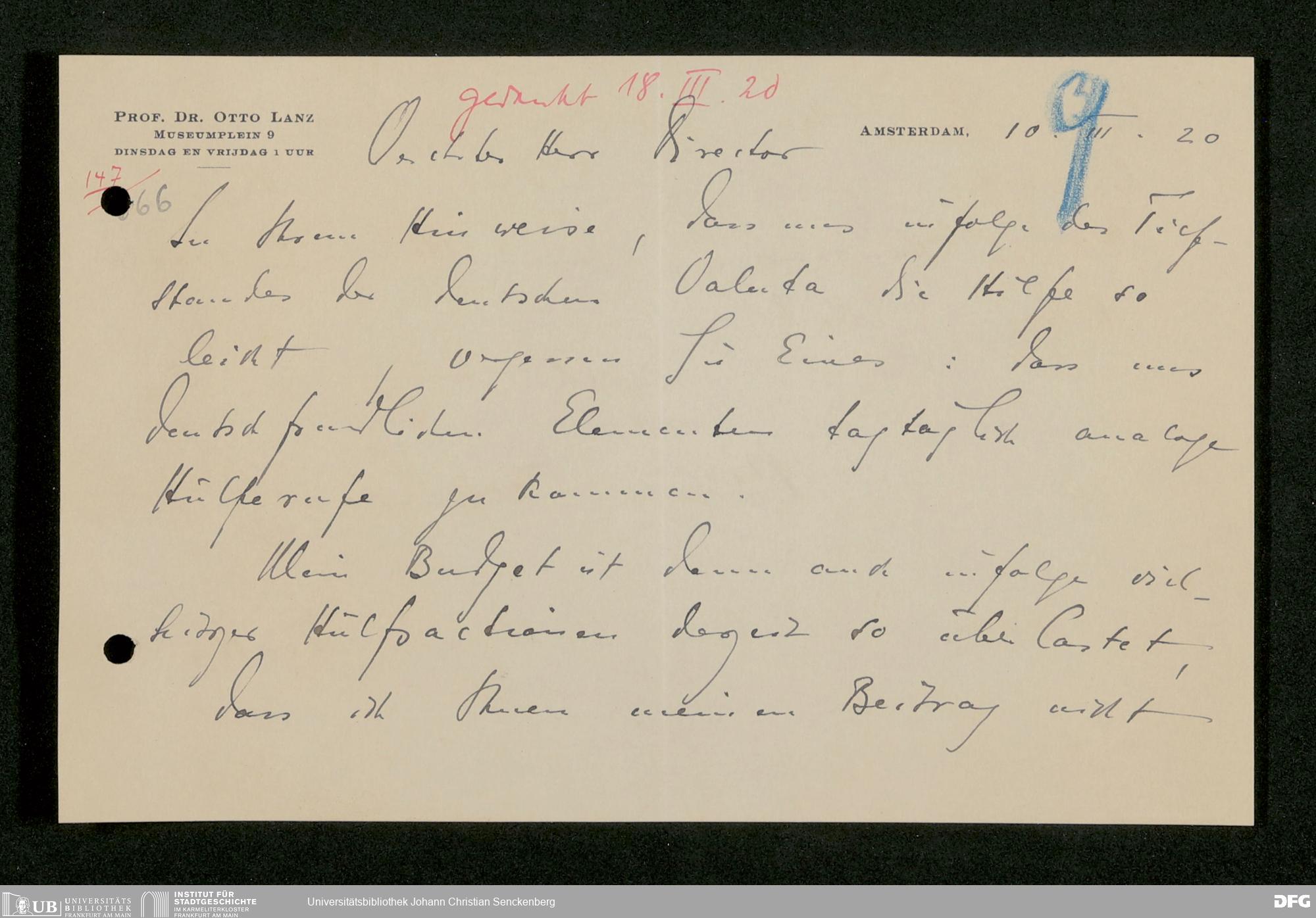 V176 Senckenberg Gesellschaft für Naturforschung, 534 - Mitgliederwerbung in und Geldspenden aus den Niederlanden