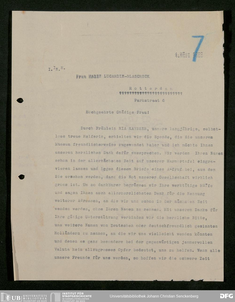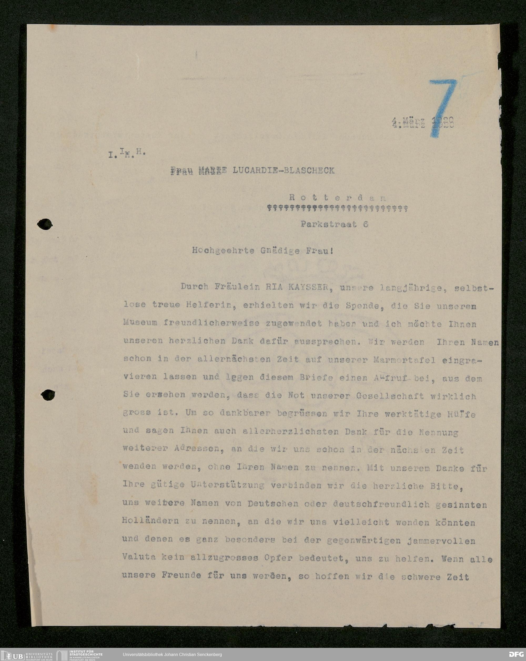 V176 Senckenberg Gesellschaft für Naturforschung, 534 - Mitgliederwerbung in und Geldspenden aus den Niederlanden