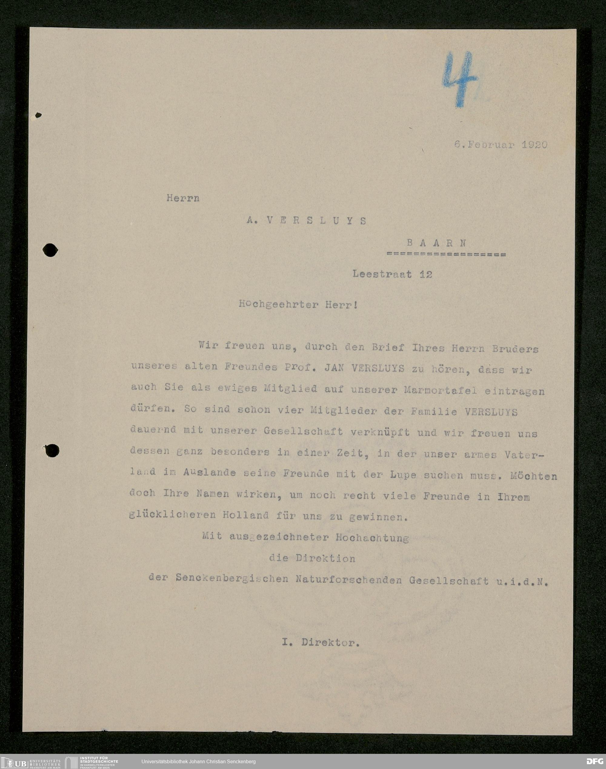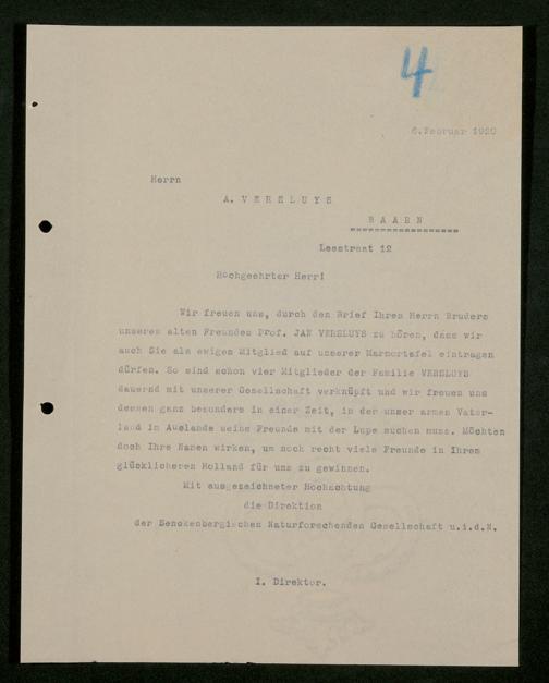 V176 Senckenberg Gesellschaft für Naturforschung, 534 - Mitgliederwerbung in und Geldspenden aus den Niederlanden