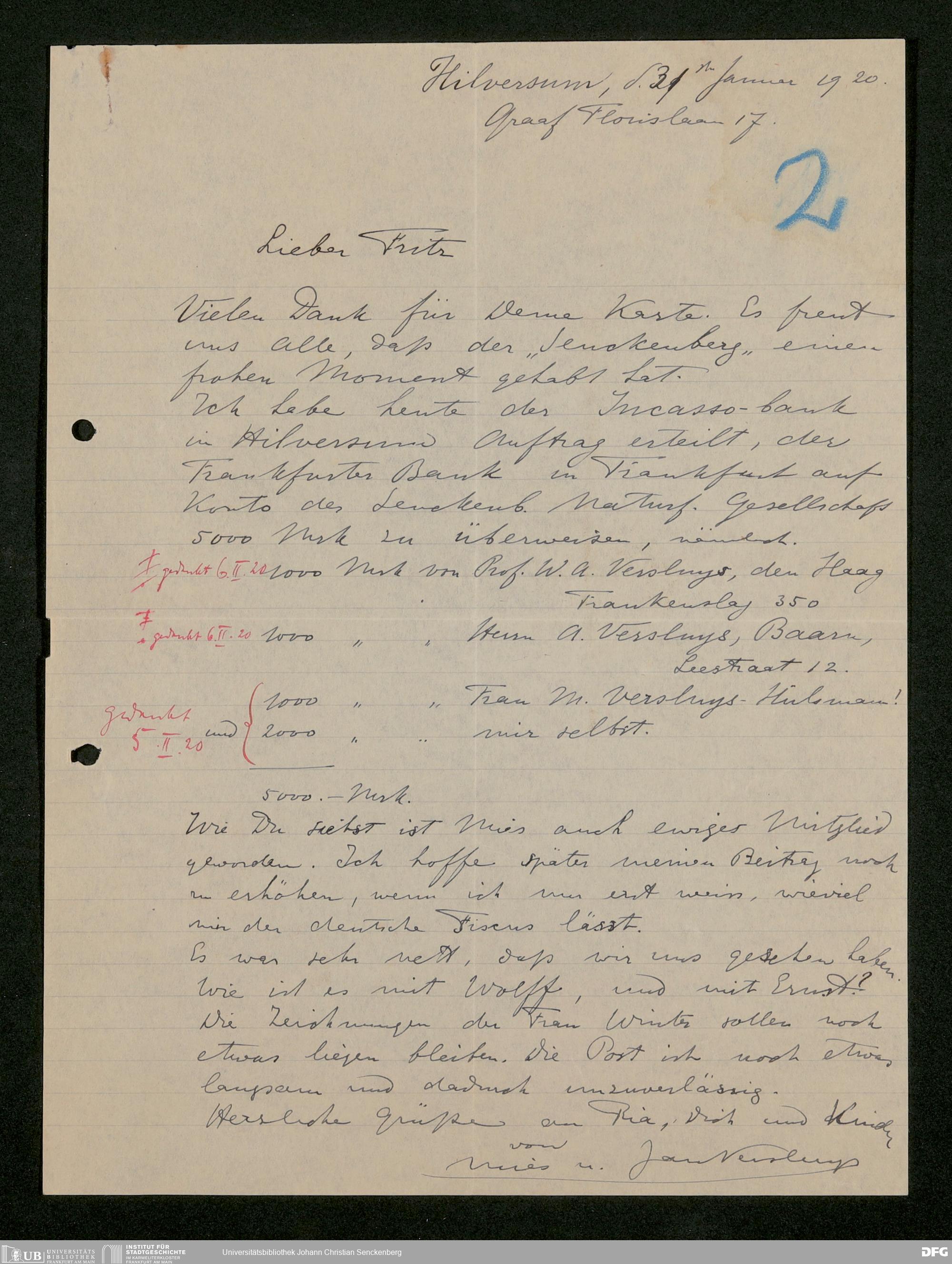 V176 Senckenberg Gesellschaft für Naturforschung, 534 - Mitgliederwerbung in und Geldspenden aus den Niederlanden