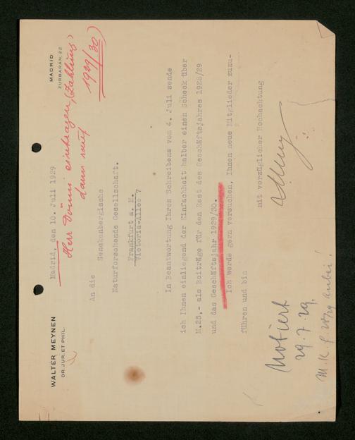 V176 Senckenberg Gesellschaft für Naturforschung, 535 - Mitgliederwerbung in und Geldspenden aus Spanien