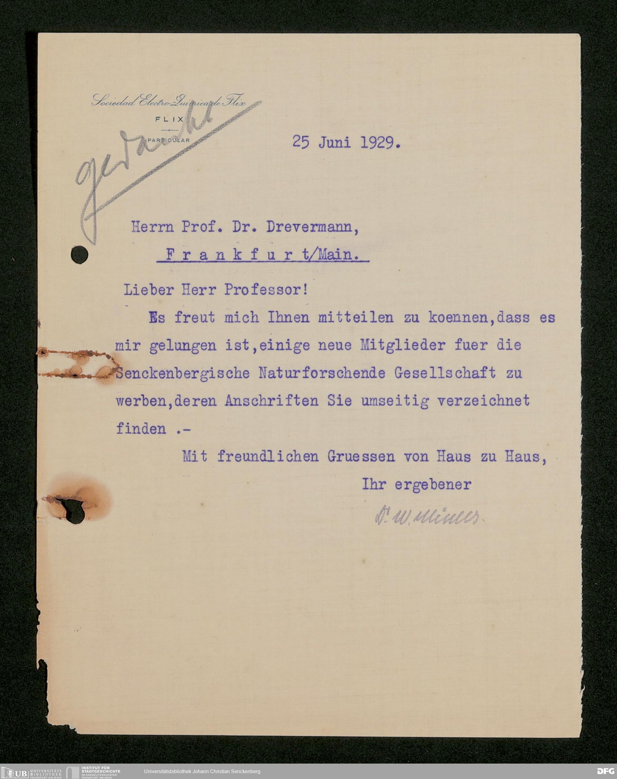 V176 Senckenberg Gesellschaft für Naturforschung, 535 - Mitgliederwerbung in und Geldspenden aus Spanien