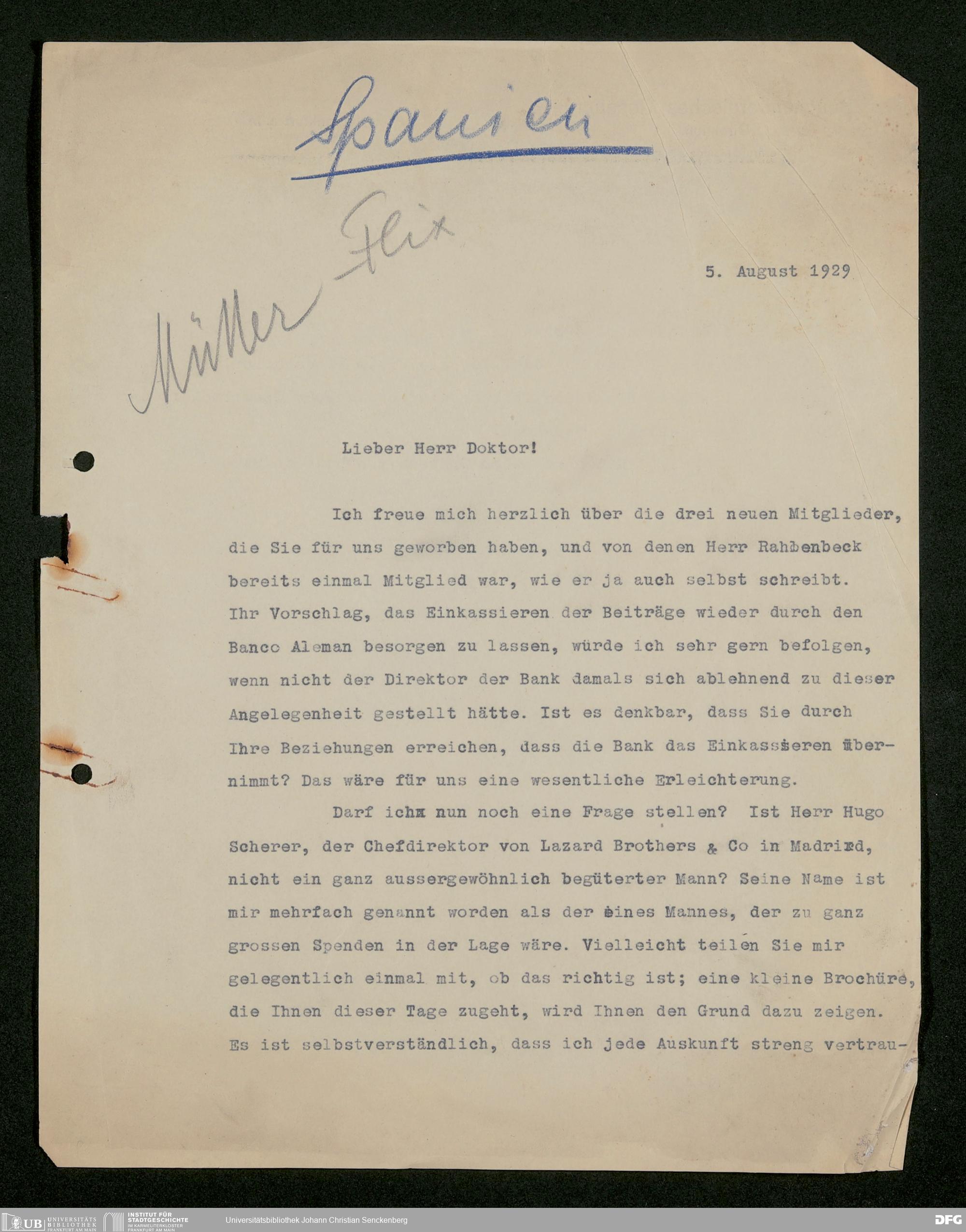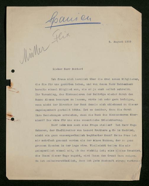 V176 Senckenberg Gesellschaft für Naturforschung, 535 - Mitgliederwerbung in und Geldspenden aus Spanien