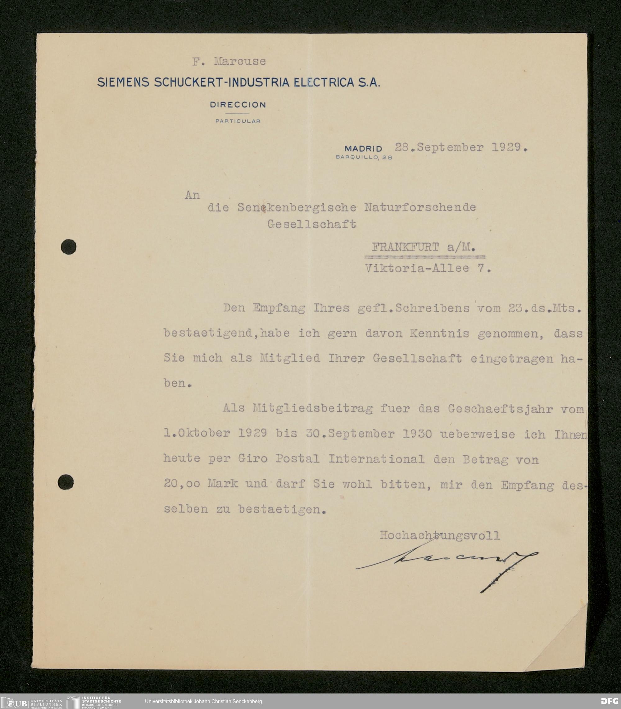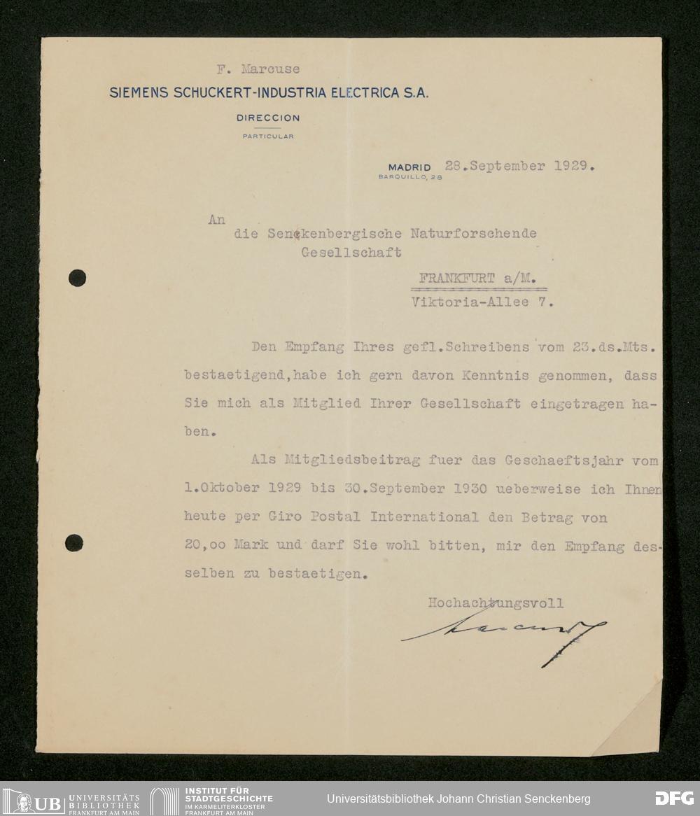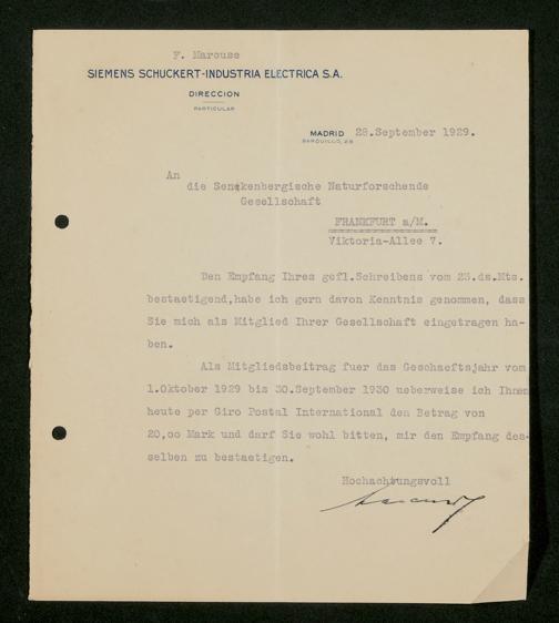 V176 Senckenberg Gesellschaft für Naturforschung, 535 - Mitgliederwerbung in und Geldspenden aus Spanien
