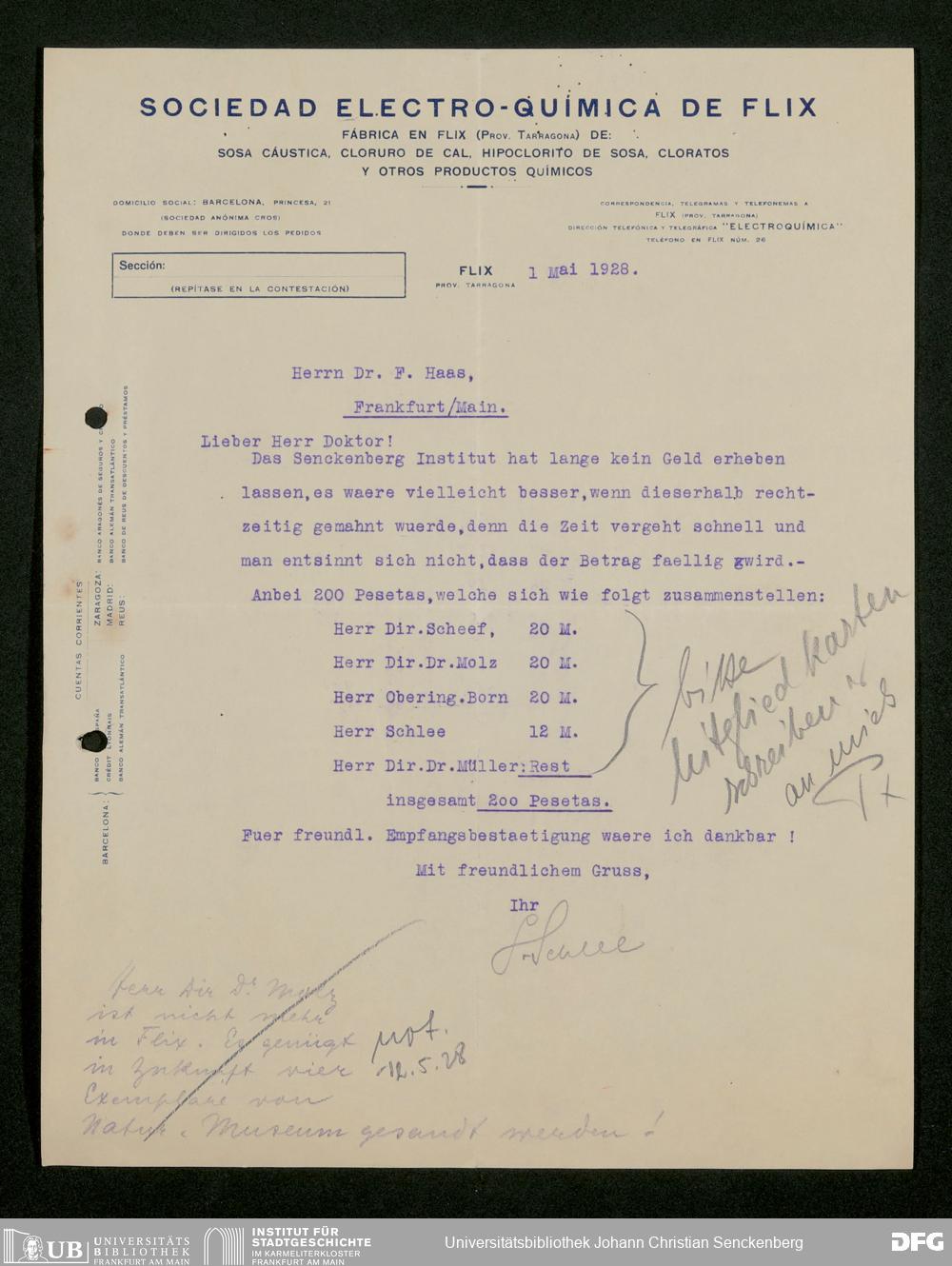 V176 Senckenberg Gesellschaft für Naturforschung, 535 - Mitgliederwerbung in und Geldspenden aus Spanien