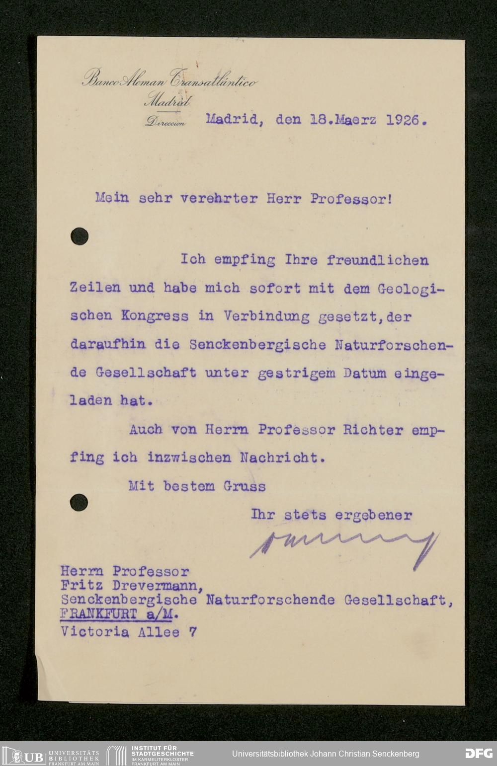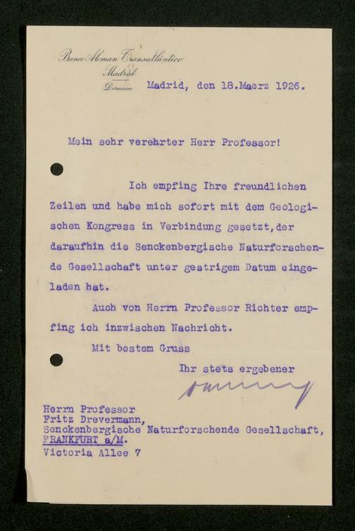 V176 Senckenberg Gesellschaft für Naturforschung, 535 - Mitgliederwerbung in und Geldspenden aus Spanien