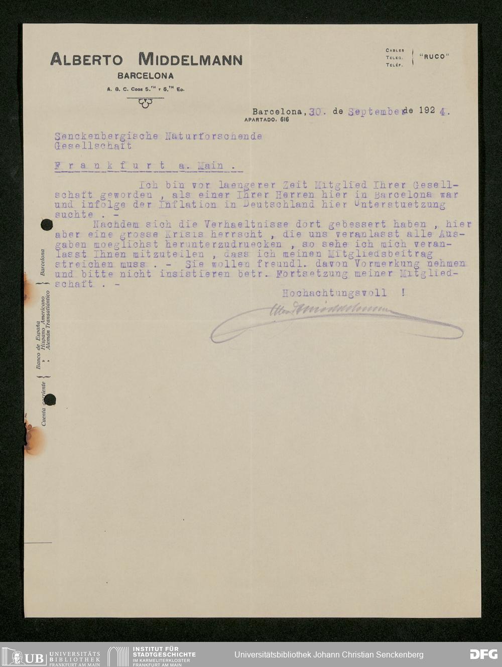 V176 Senckenberg Gesellschaft für Naturforschung, 535 - Mitgliederwerbung in und Geldspenden aus Spanien