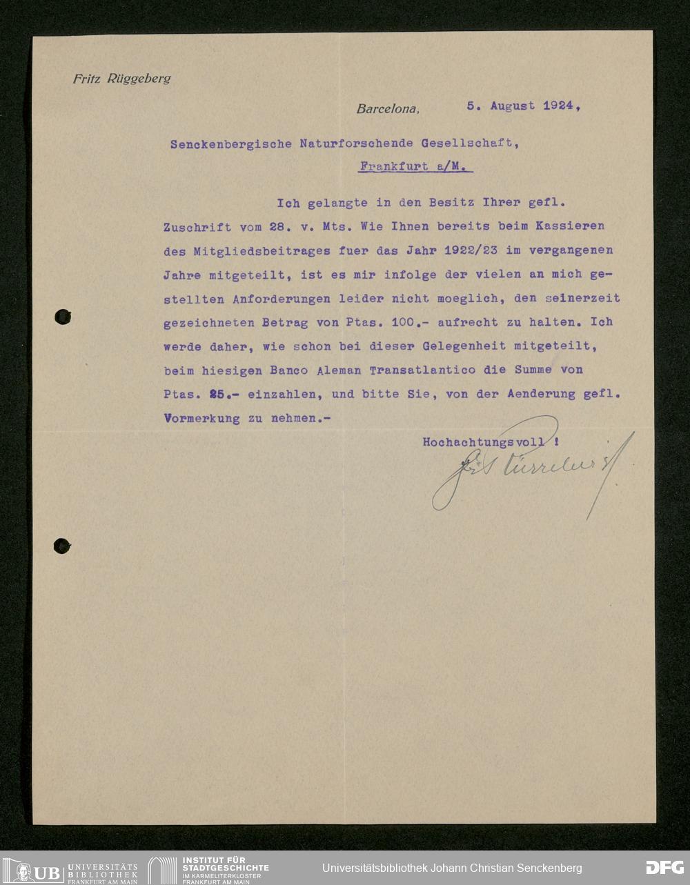 V176 Senckenberg Gesellschaft für Naturforschung, 535 - Mitgliederwerbung in und Geldspenden aus Spanien