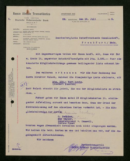 V176 Senckenberg Gesellschaft für Naturforschung, 535 - Mitgliederwerbung in und Geldspenden aus Spanien