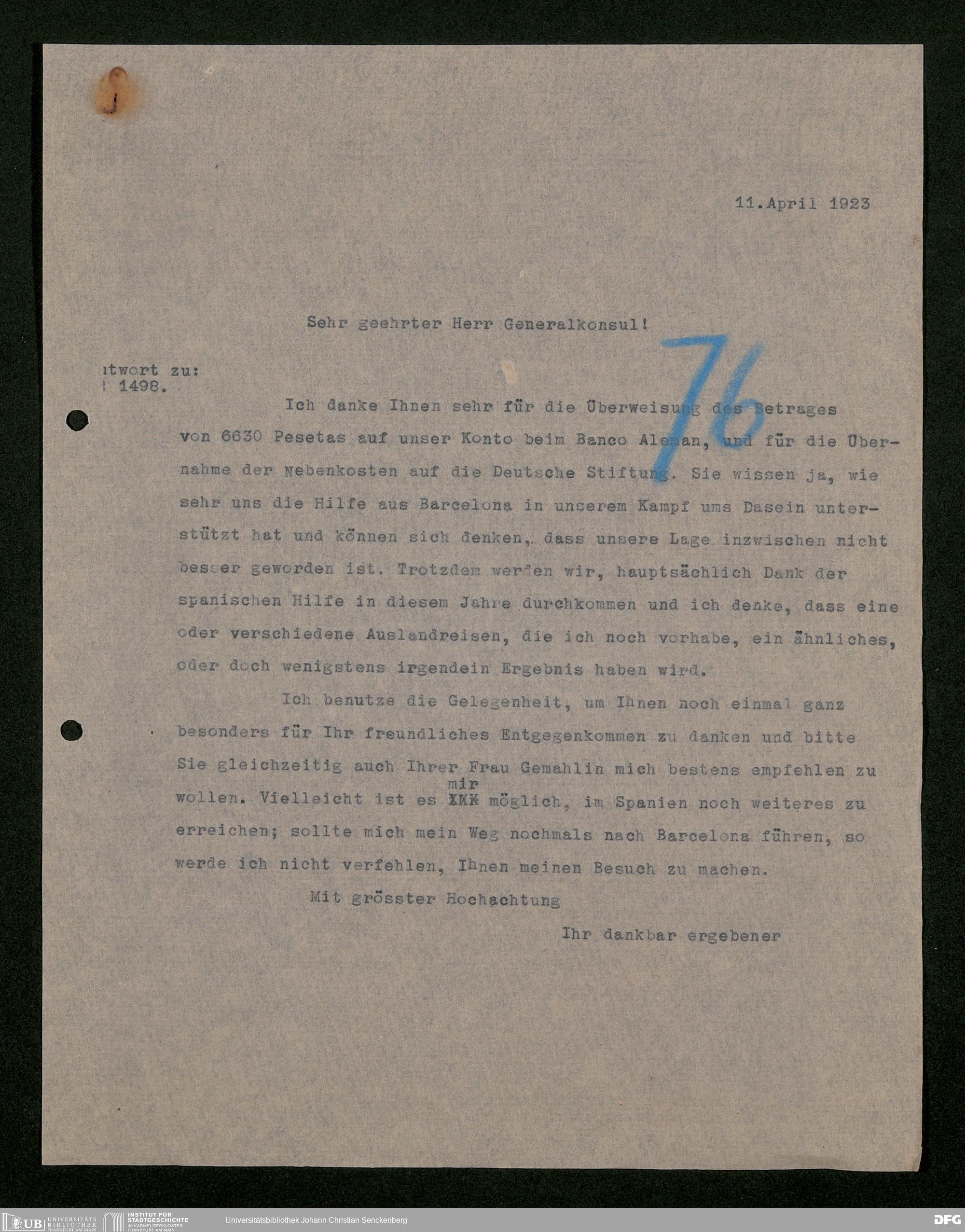 V176 Senckenberg Gesellschaft für Naturforschung, 535 - Mitgliederwerbung in und Geldspenden aus Spanien