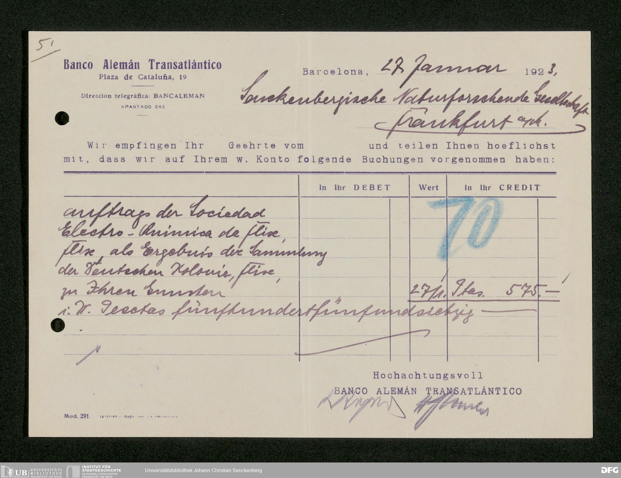 V176 Senckenberg Gesellschaft für Naturforschung, 535 - Mitgliederwerbung in und Geldspenden aus Spanien