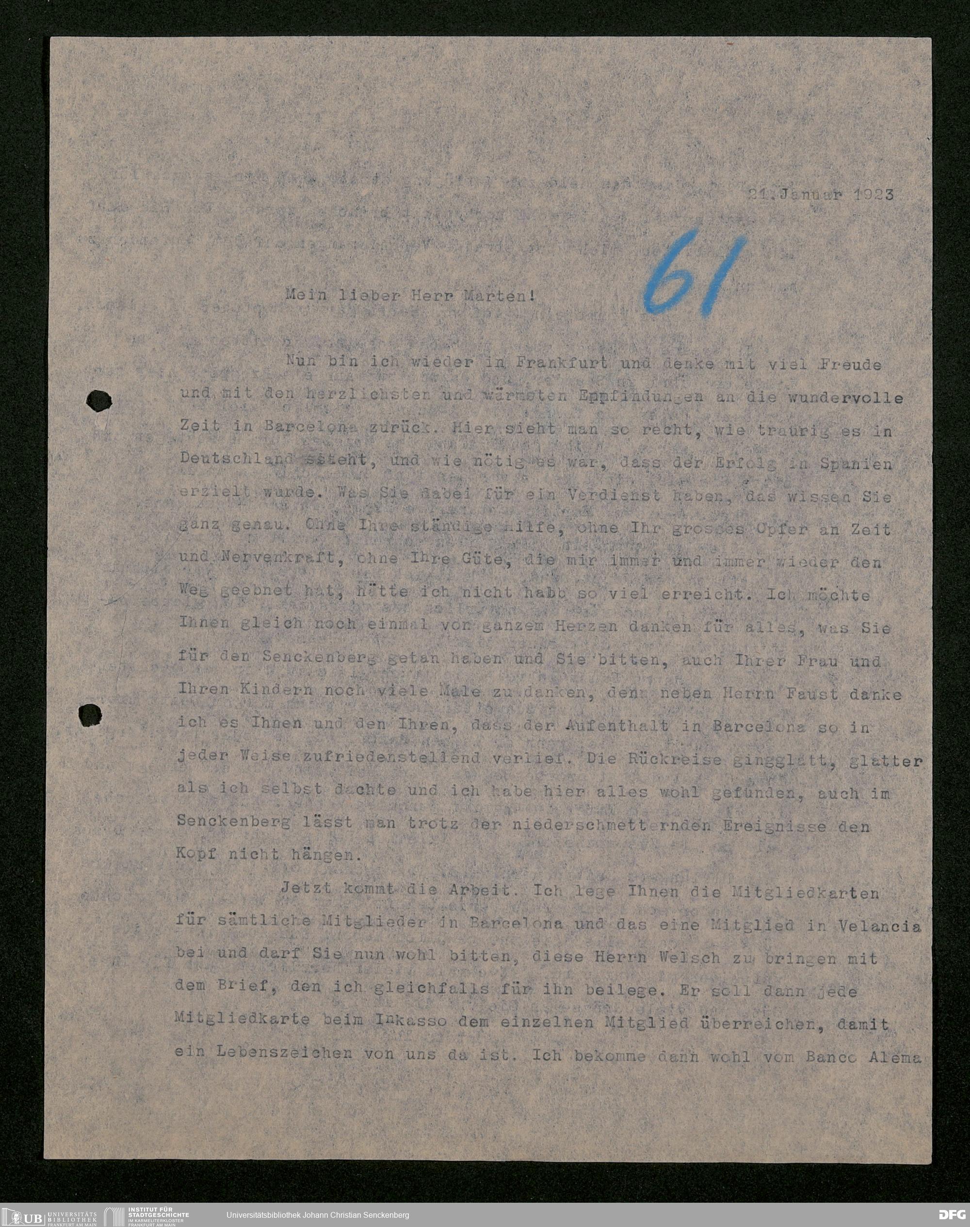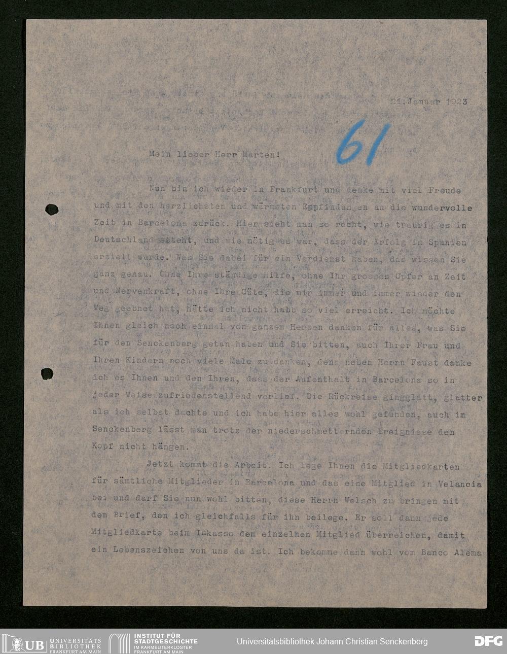 V176 Senckenberg Gesellschaft für Naturforschung, 535 - Mitgliederwerbung in und Geldspenden aus Spanien