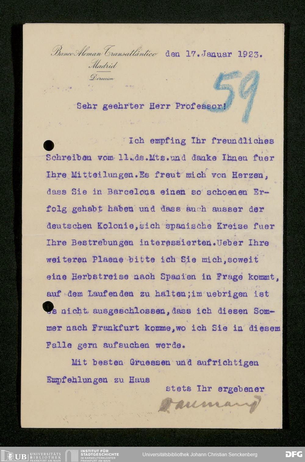 V176 Senckenberg Gesellschaft für Naturforschung, 535 - Mitgliederwerbung in und Geldspenden aus Spanien