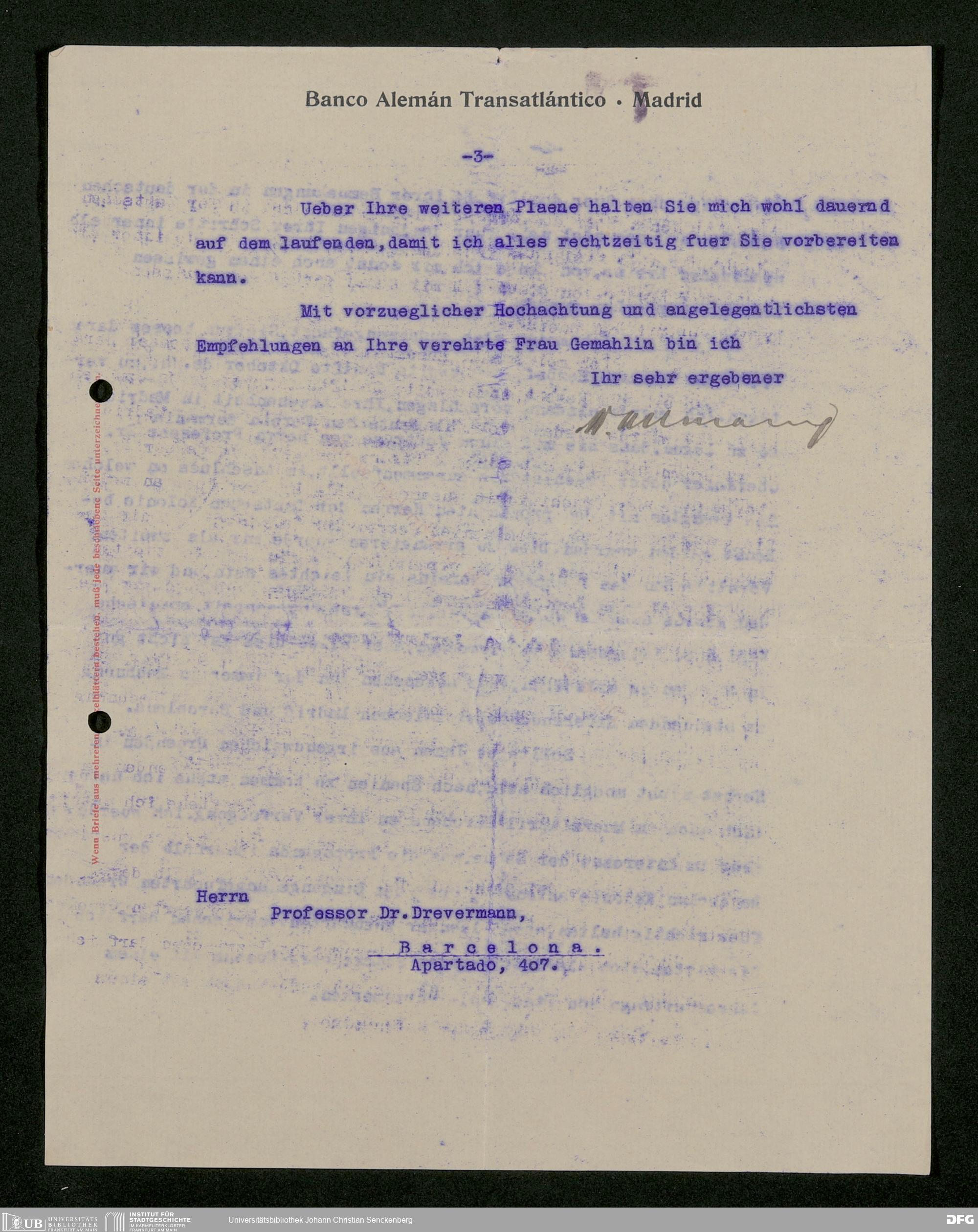 V176 Senckenberg Gesellschaft für Naturforschung, 535 - Mitgliederwerbung in und Geldspenden aus Spanien