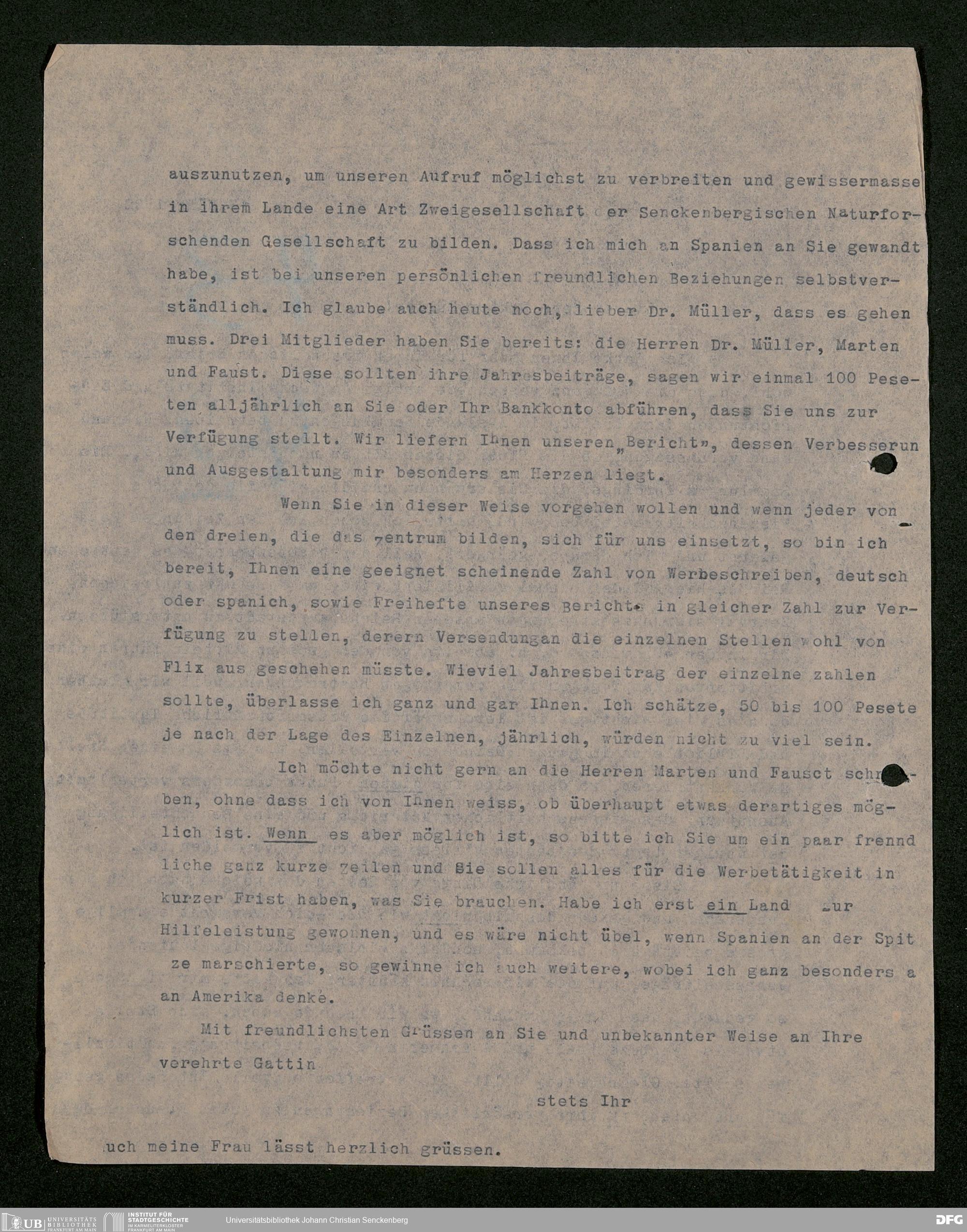 V176 Senckenberg Gesellschaft für Naturforschung, 535 - Mitgliederwerbung in und Geldspenden aus Spanien