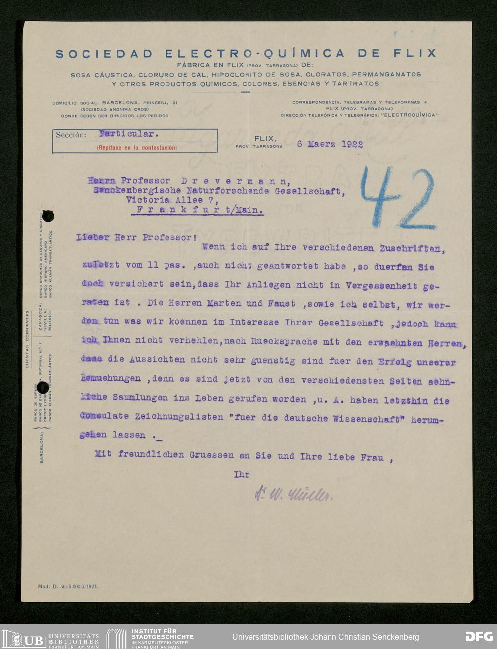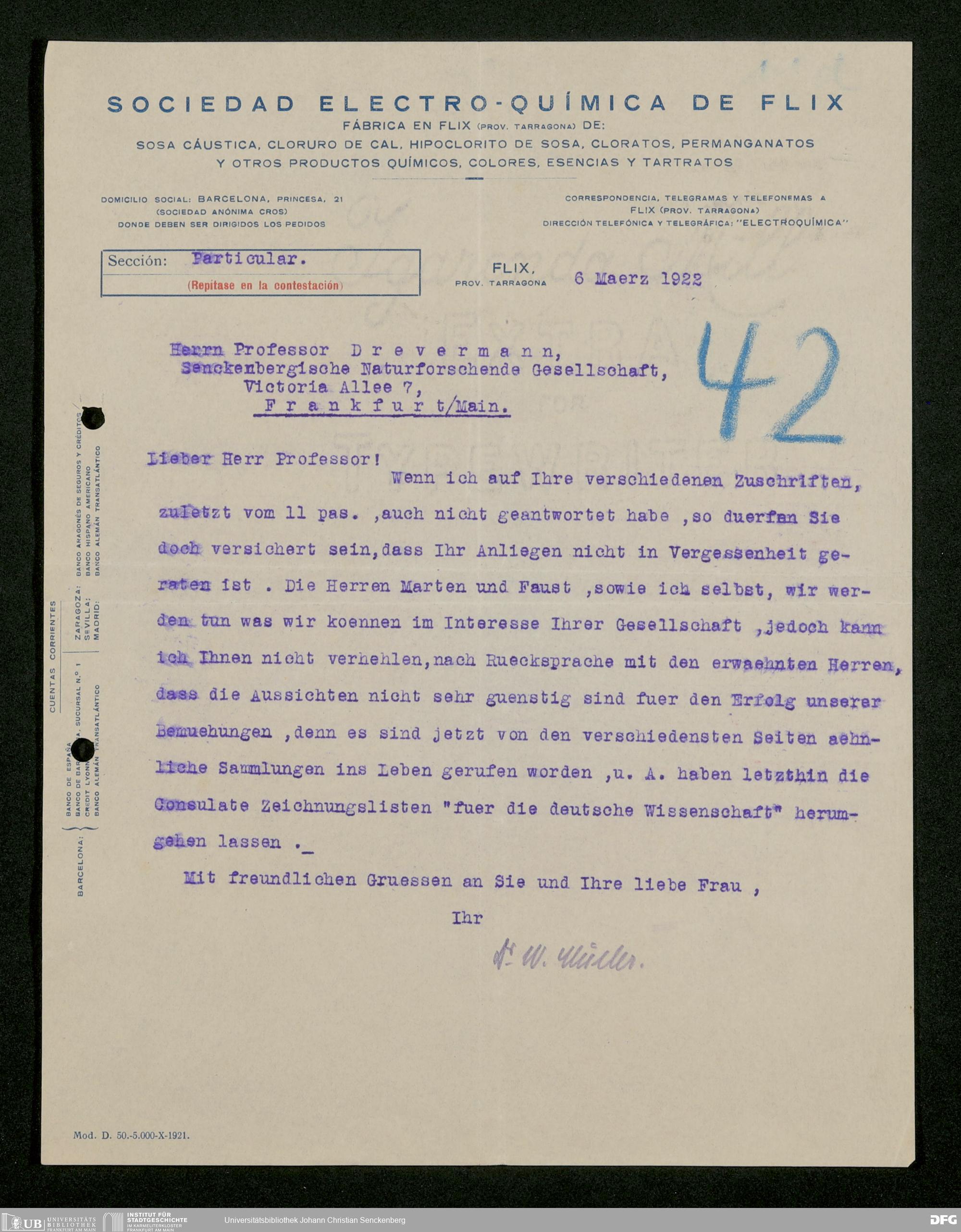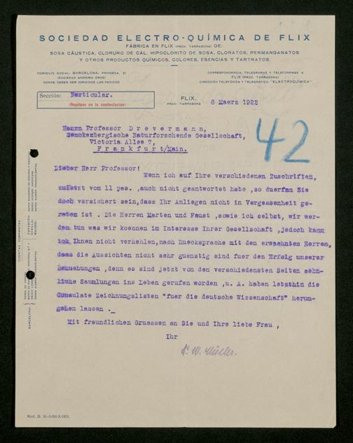 V176 Senckenberg Gesellschaft für Naturforschung, 535 - Mitgliederwerbung in und Geldspenden aus Spanien