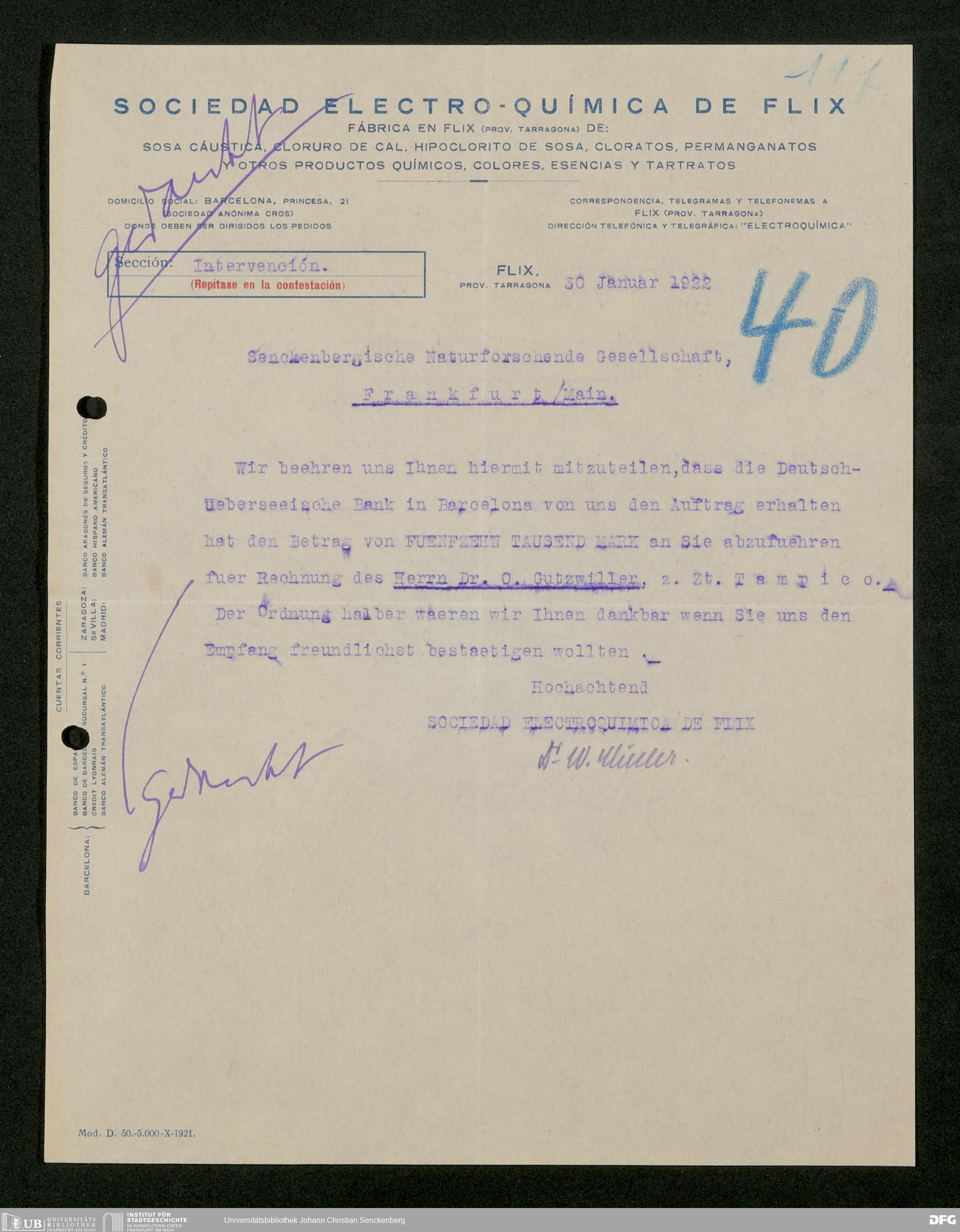 V176 Senckenberg Gesellschaft für Naturforschung, 535 - Mitgliederwerbung in und Geldspenden aus Spanien