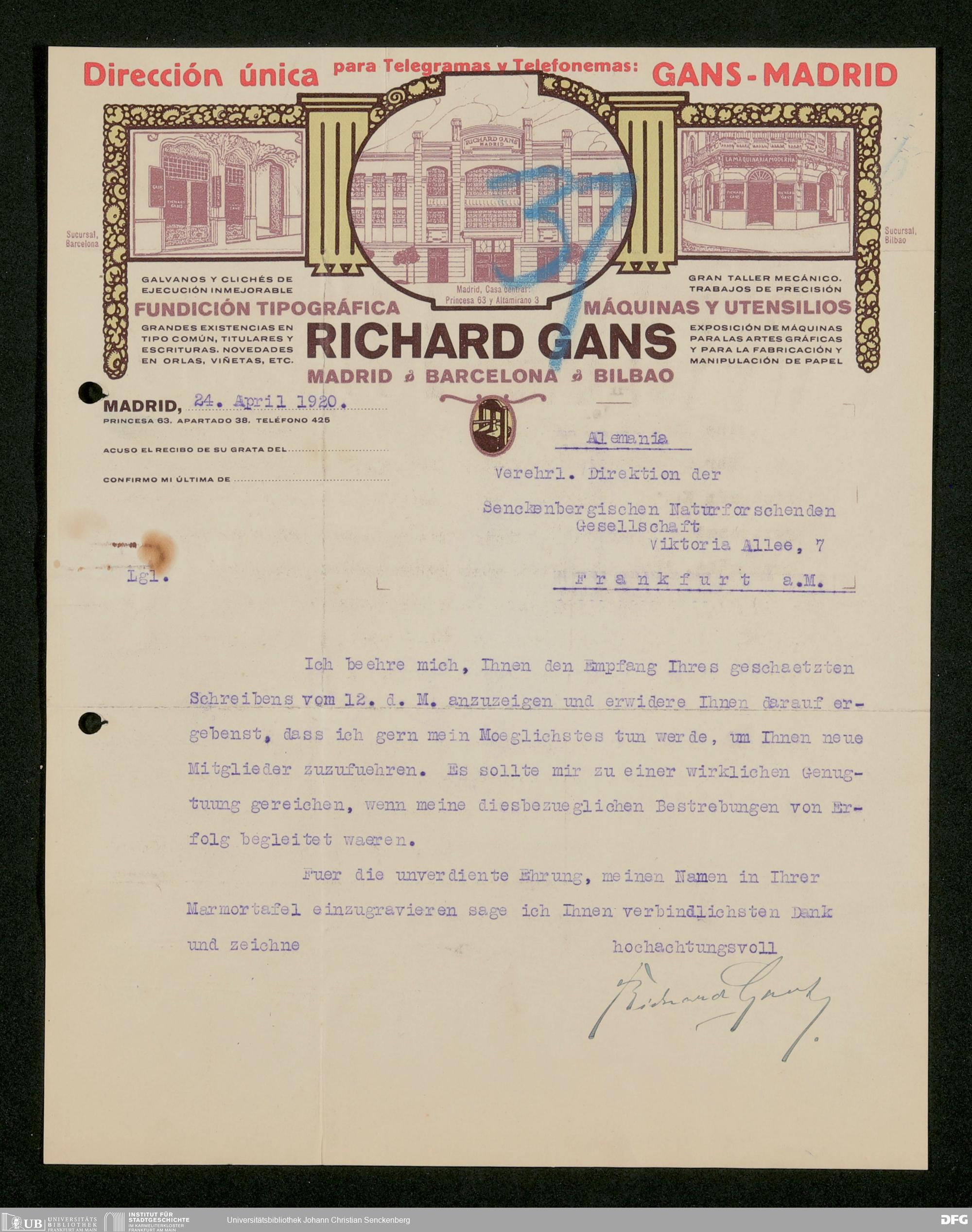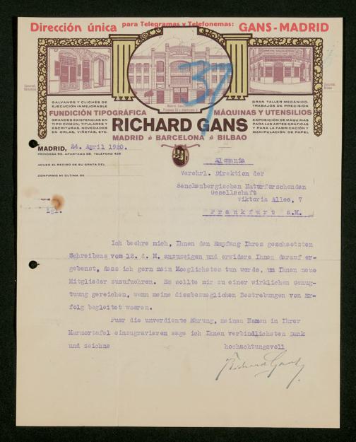 V176 Senckenberg Gesellschaft für Naturforschung, 535 - Mitgliederwerbung in und Geldspenden aus Spanien