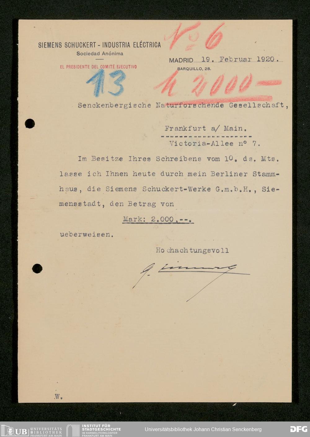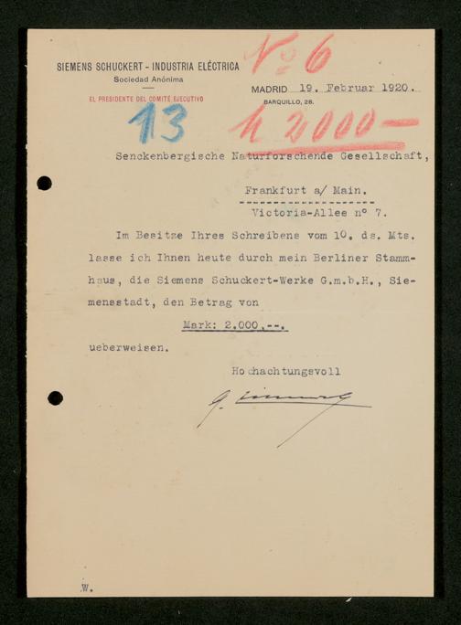 V176 Senckenberg Gesellschaft für Naturforschung, 535 - Mitgliederwerbung in und Geldspenden aus Spanien