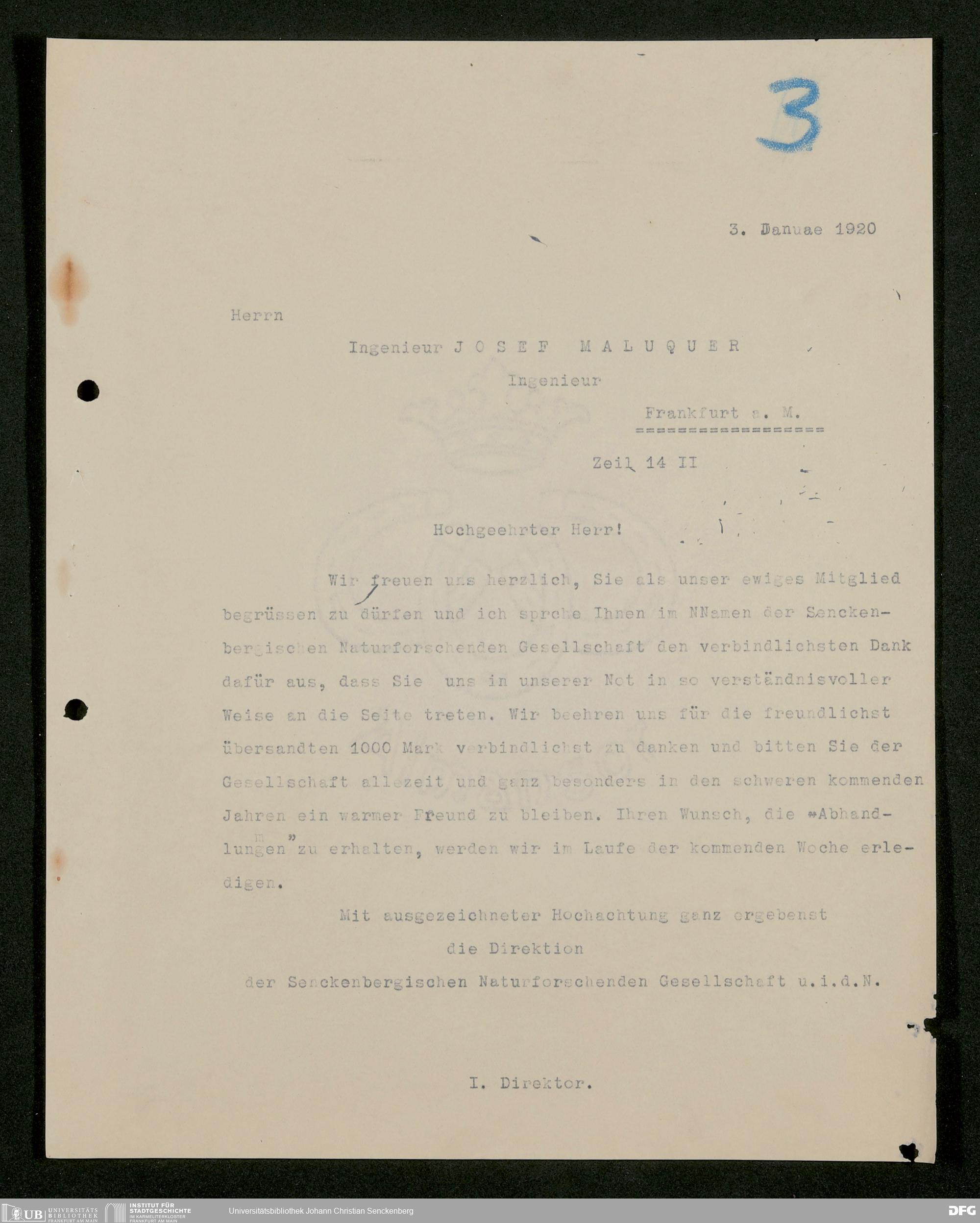 V176 Senckenberg Gesellschaft für Naturforschung, 535 - Mitgliederwerbung in und Geldspenden aus Spanien