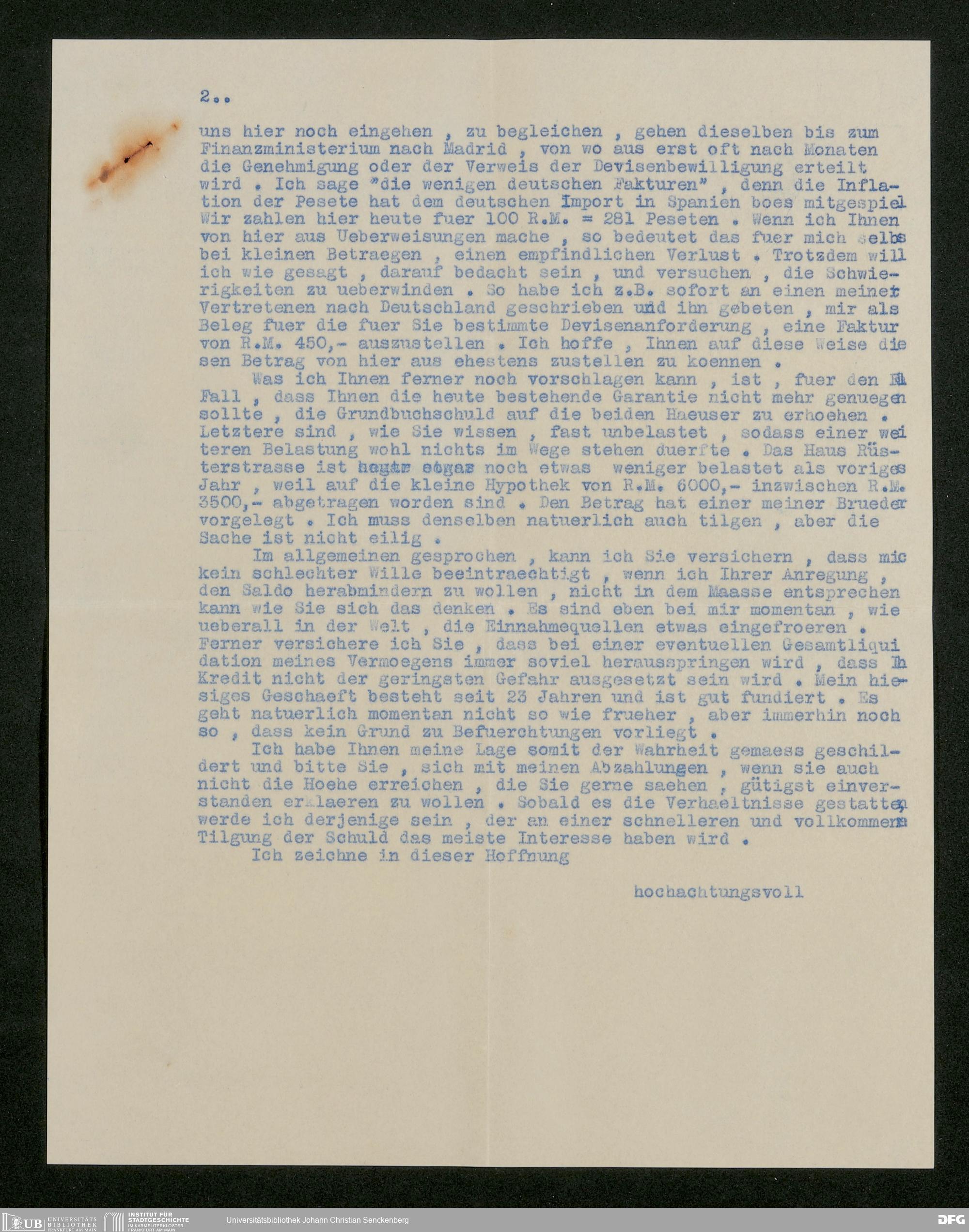 V176 Senckenberg Gesellschaft für Naturforschung, 536 - Bitte um Unterstützung in einer Hypothekenangelegenheit von Karl Faust an Fritz Drevermann