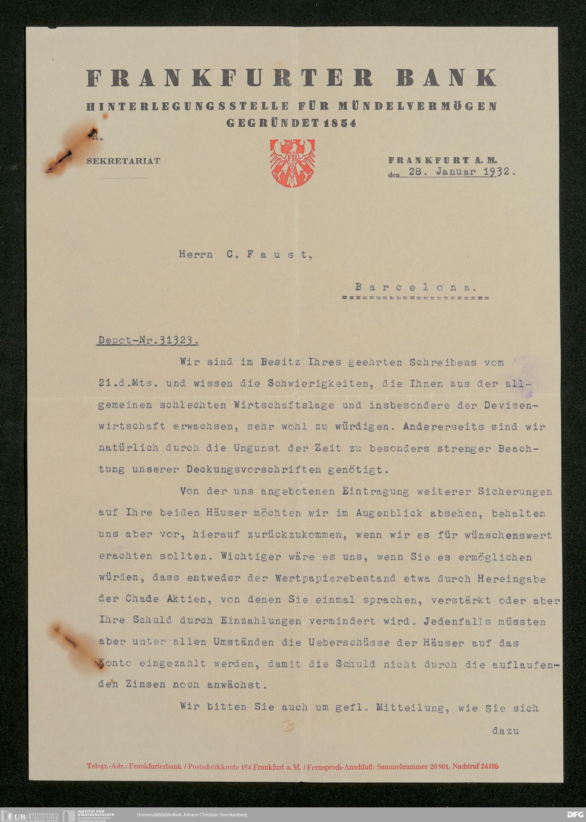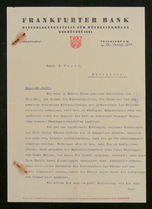 V176 Senckenberg Gesellschaft für Naturforschung, 536 - Bitte um Unterstützung in einer Hypothekenangelegenheit von Karl Faust an Fritz Drevermann