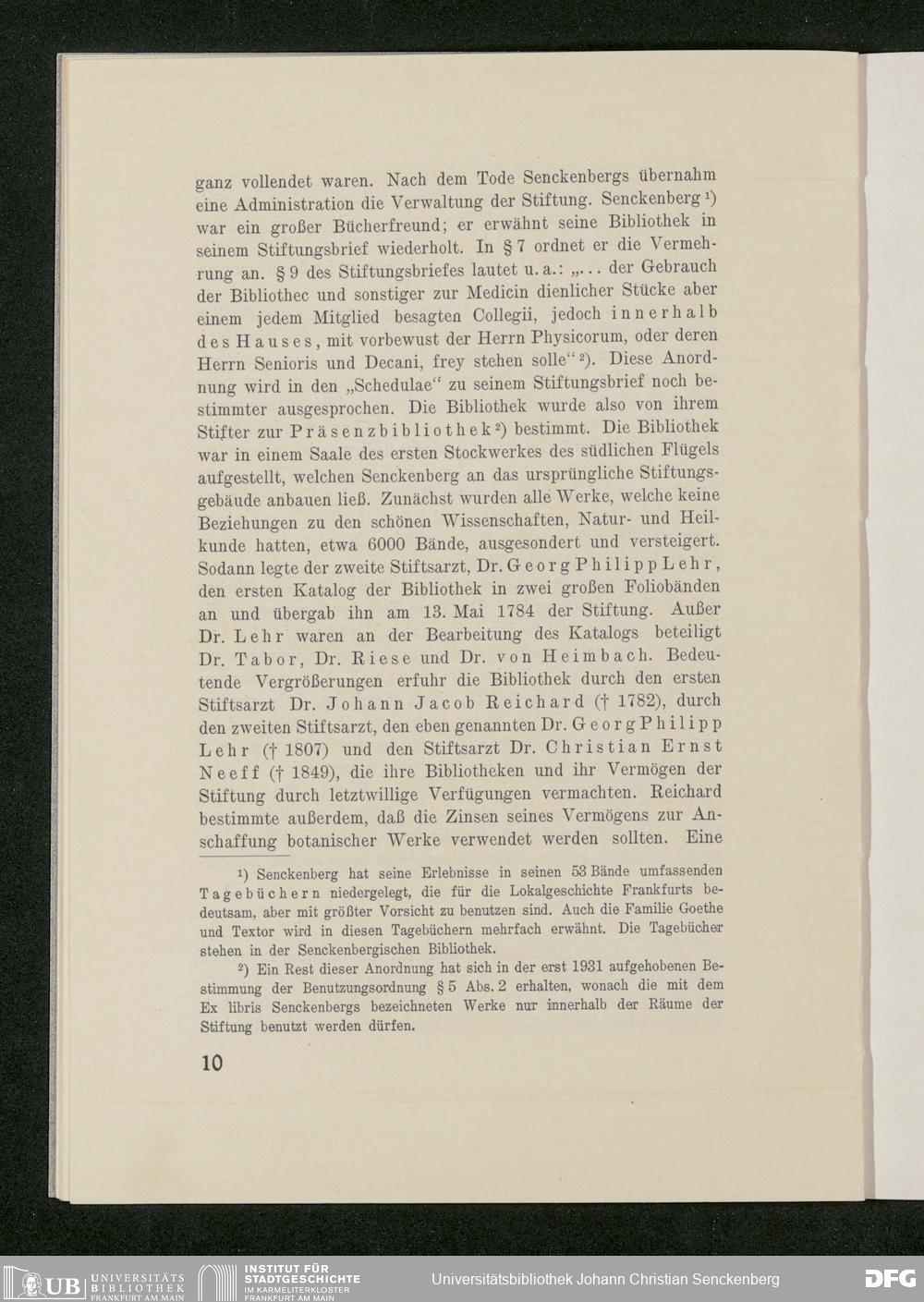 V176 Senckenberg Gesellschaft für Naturforschung, 542 - Informationen über die Senckenbergische Bibliothek