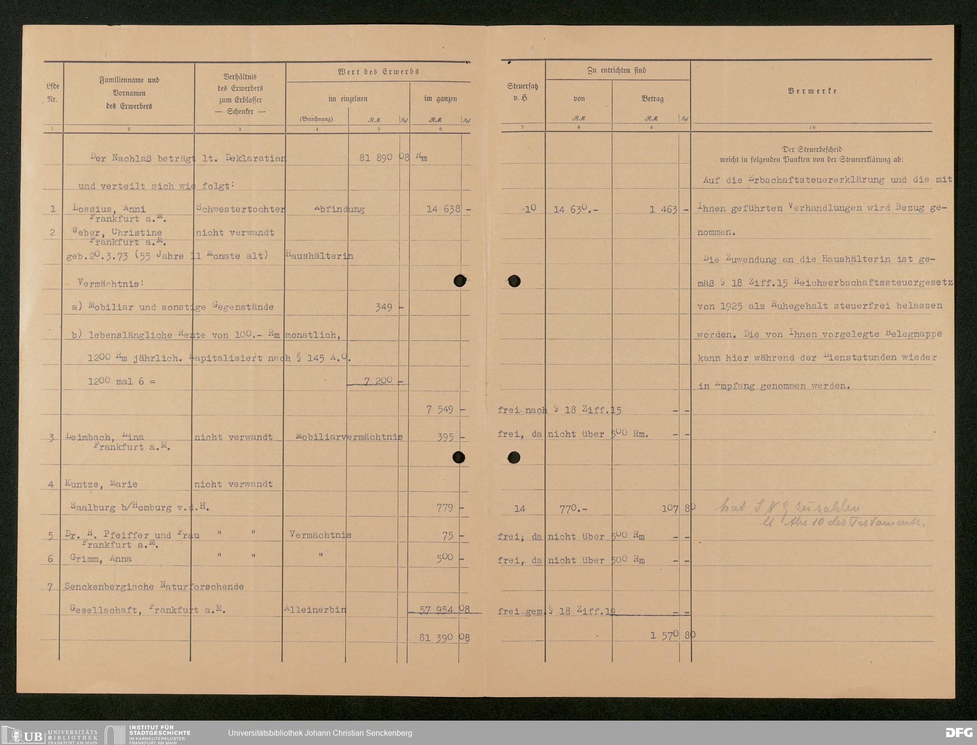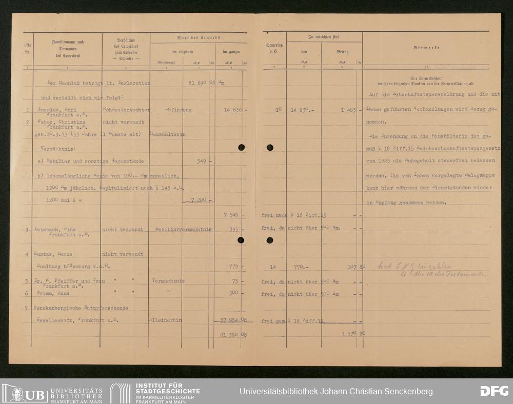 V176 Senckenberg Gesellschaft für Naturforschung, 543 - Verwaltung des Nachlasses von Eva Hermann geb. Ermold