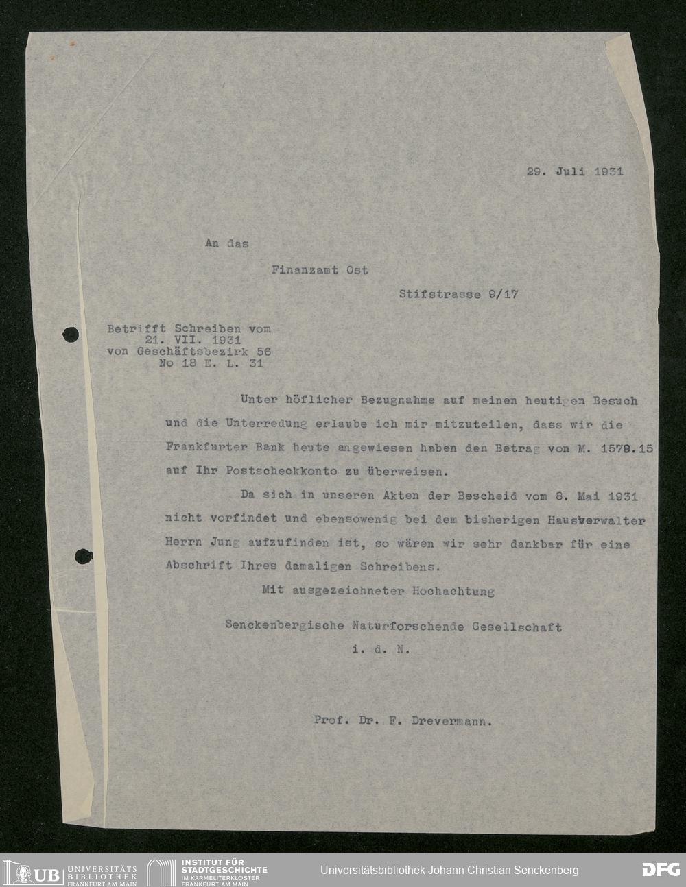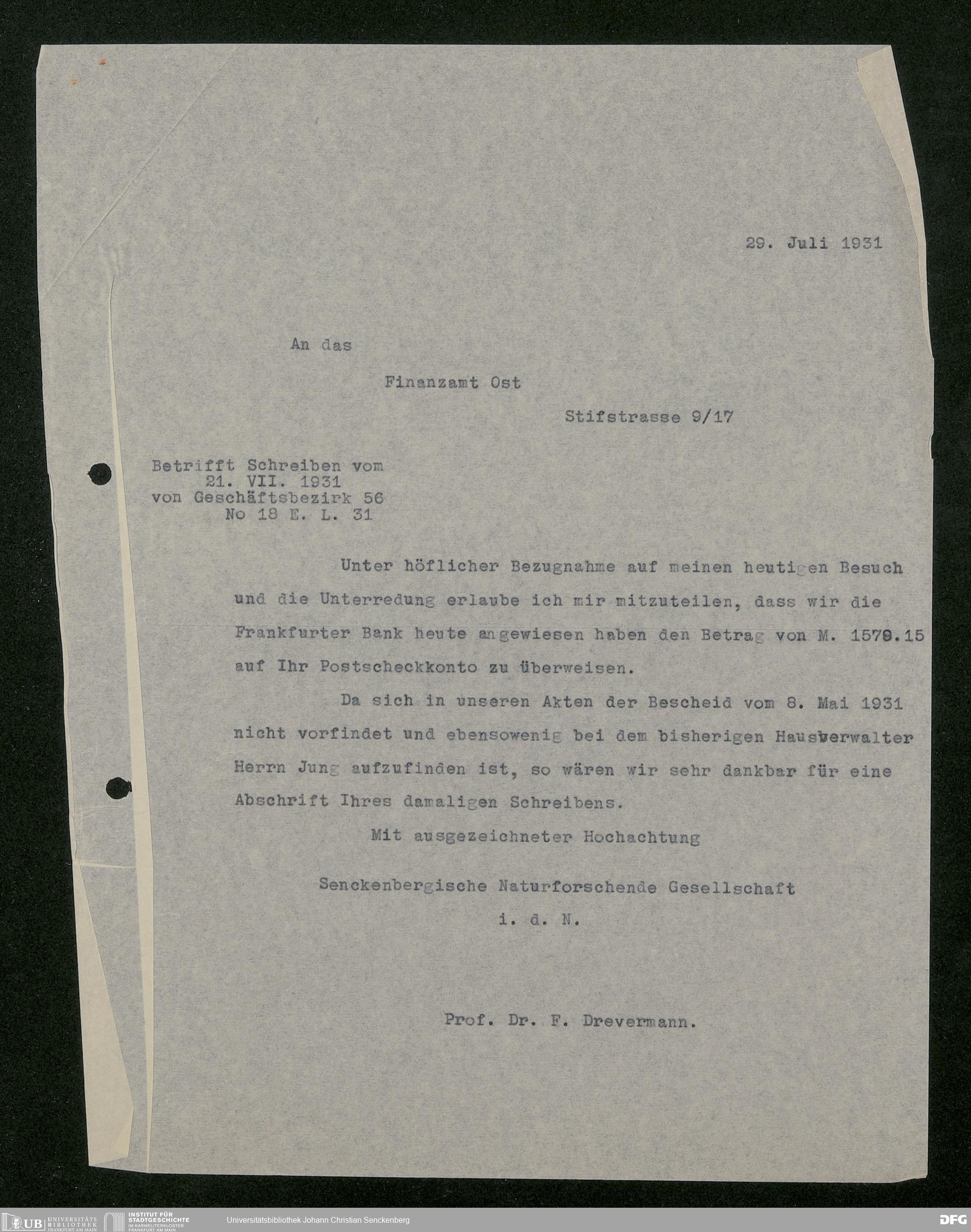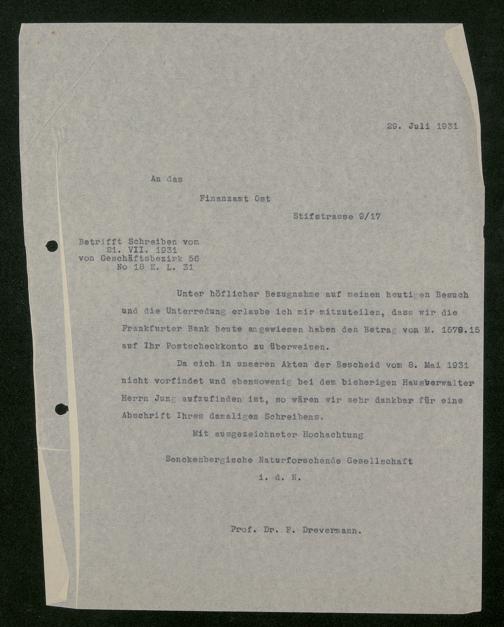 V176 Senckenberg Gesellschaft für Naturforschung, 543 - Verwaltung des Nachlasses von Eva Hermann geb. Ermold
