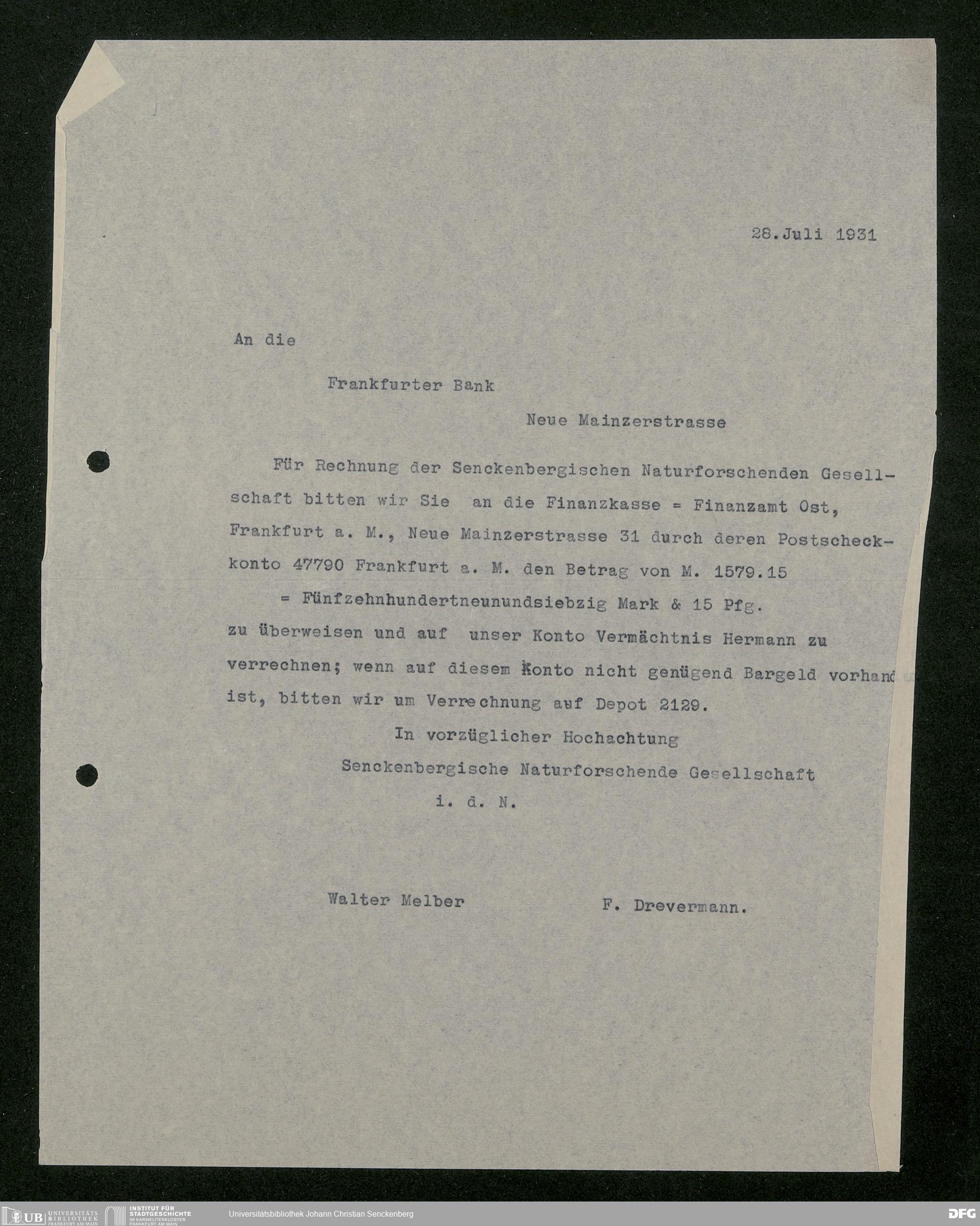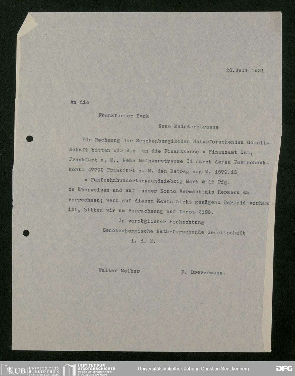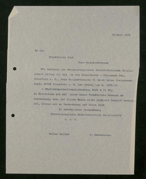 V176 Senckenberg Gesellschaft für Naturforschung, 543 - Verwaltung des Nachlasses von Eva Hermann geb. Ermold
