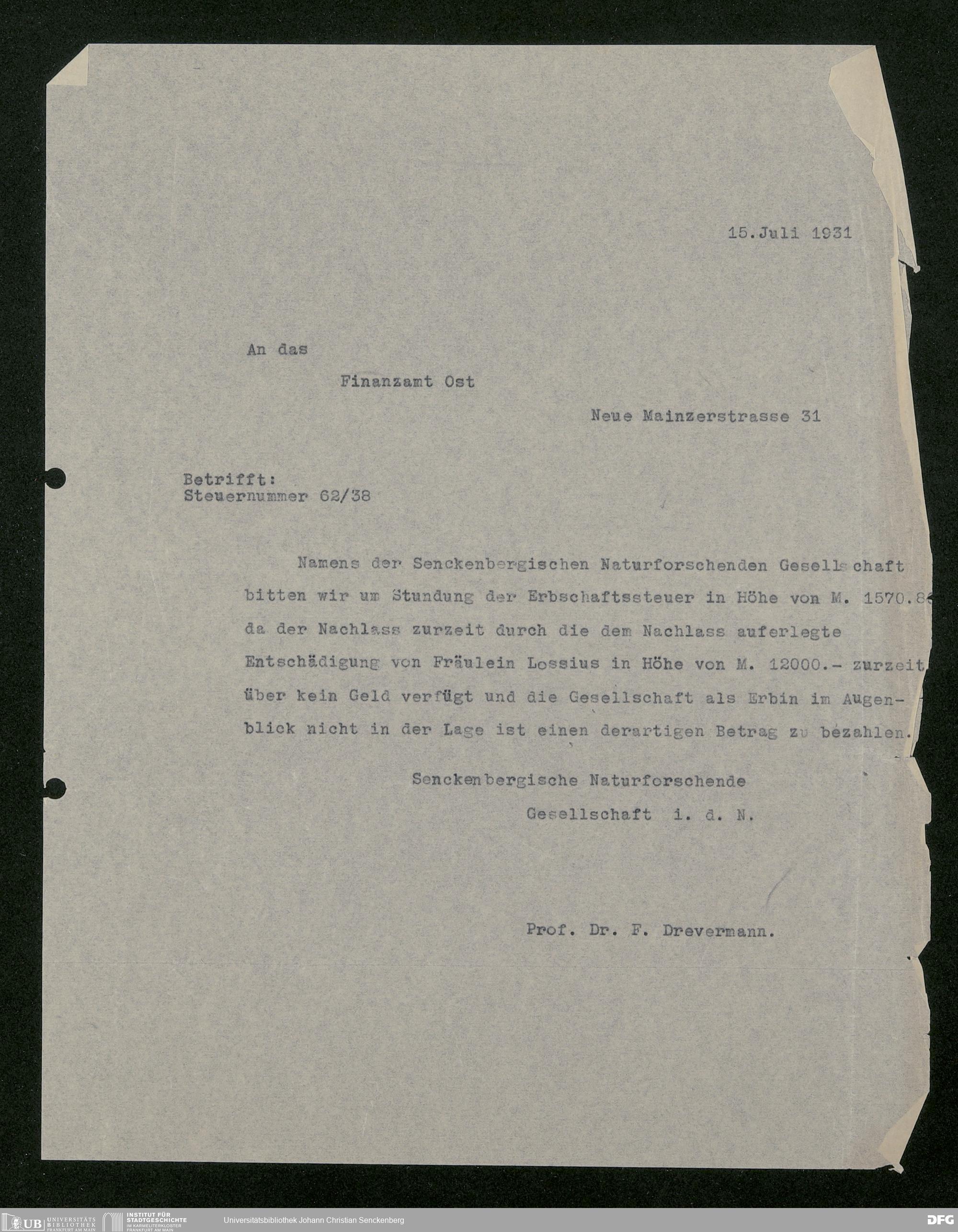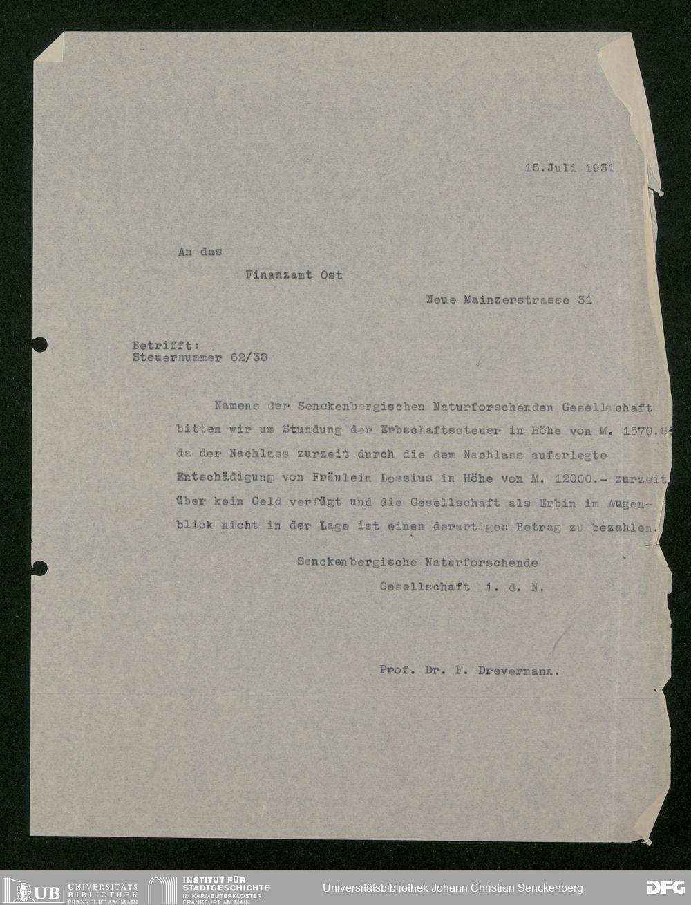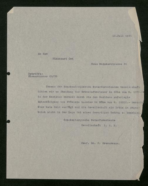 V176 Senckenberg Gesellschaft für Naturforschung, 543 - Verwaltung des Nachlasses von Eva Hermann geb. Ermold