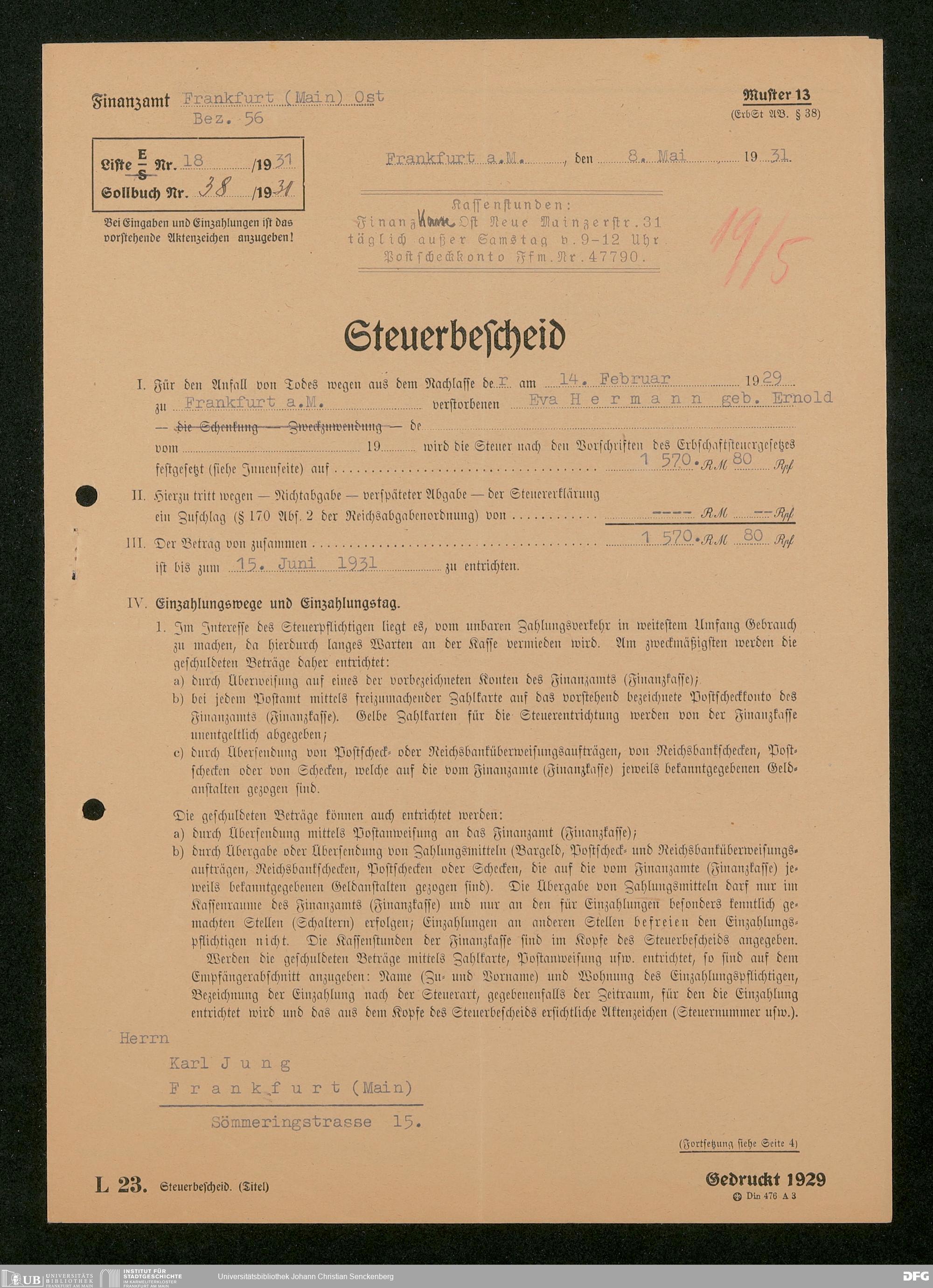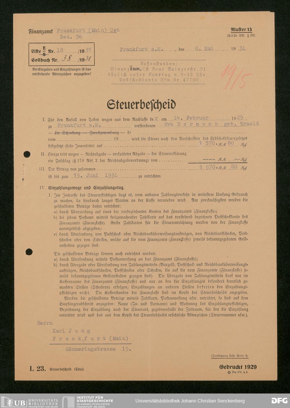 V176 Senckenberg Gesellschaft für Naturforschung, 543 - Verwaltung des Nachlasses von Eva Hermann geb. Ermold