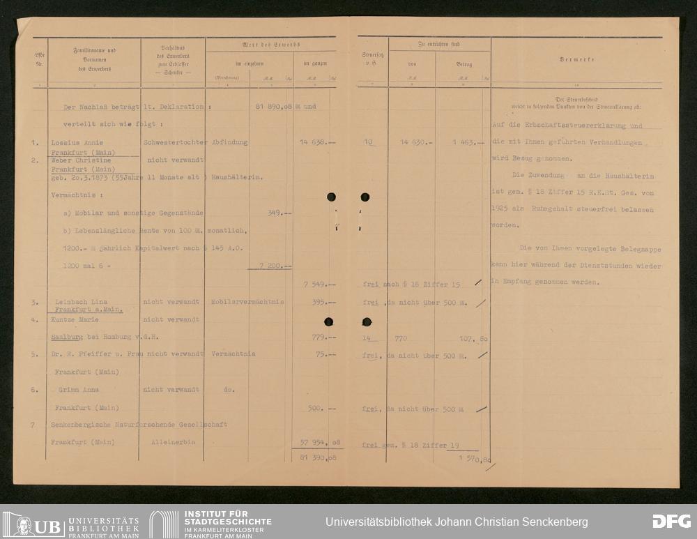 V176 Senckenberg Gesellschaft für Naturforschung, 543 - Verwaltung des Nachlasses von Eva Hermann geb. Ermold