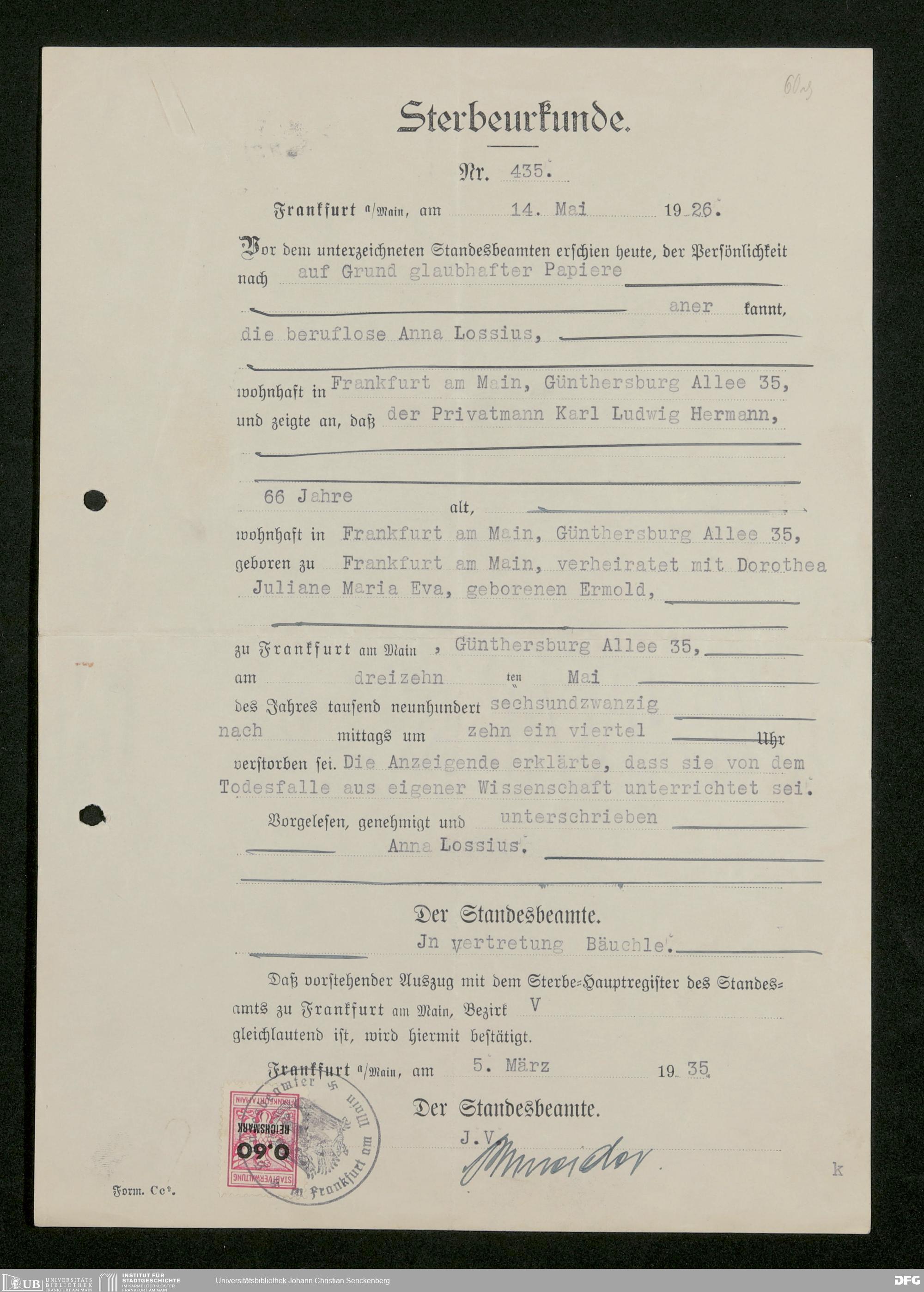 V176 Senckenberg Gesellschaft für Naturforschung, 543 - Verwaltung des Nachlasses von Eva Hermann geb. Ermold